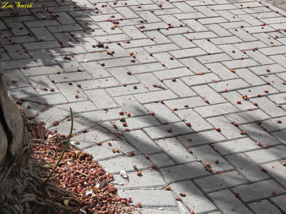 Every morning we find a big mess under the palm tree at the front of our house. I thought that it was the squirrels and other night animals that feasted on the tree's fruit.
