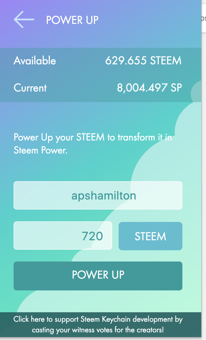 As a community, we need around 1m steem extra voting on the community-driven witnesses to decentralize the system again. 2.5K I powered up won't make a difference, but if you have liquid steem you can do the same. Every bit counts and as a community I know we can do this.