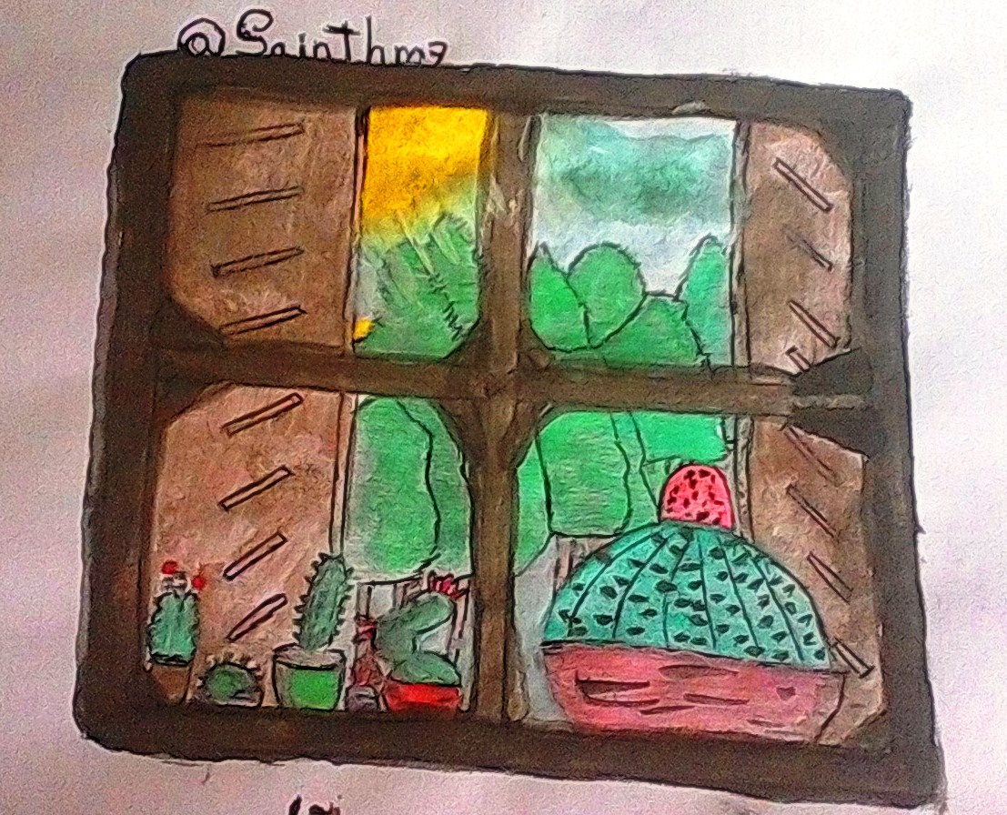 Every time I get up, I look at the horizon of a beautiful landscape. When I get to a place, windows always have a story to tell. I am accompanied by cacti and a colorful imagination. Remembering the freedom that nature offers, the desire to play is strong on this wonderful sunny day.
