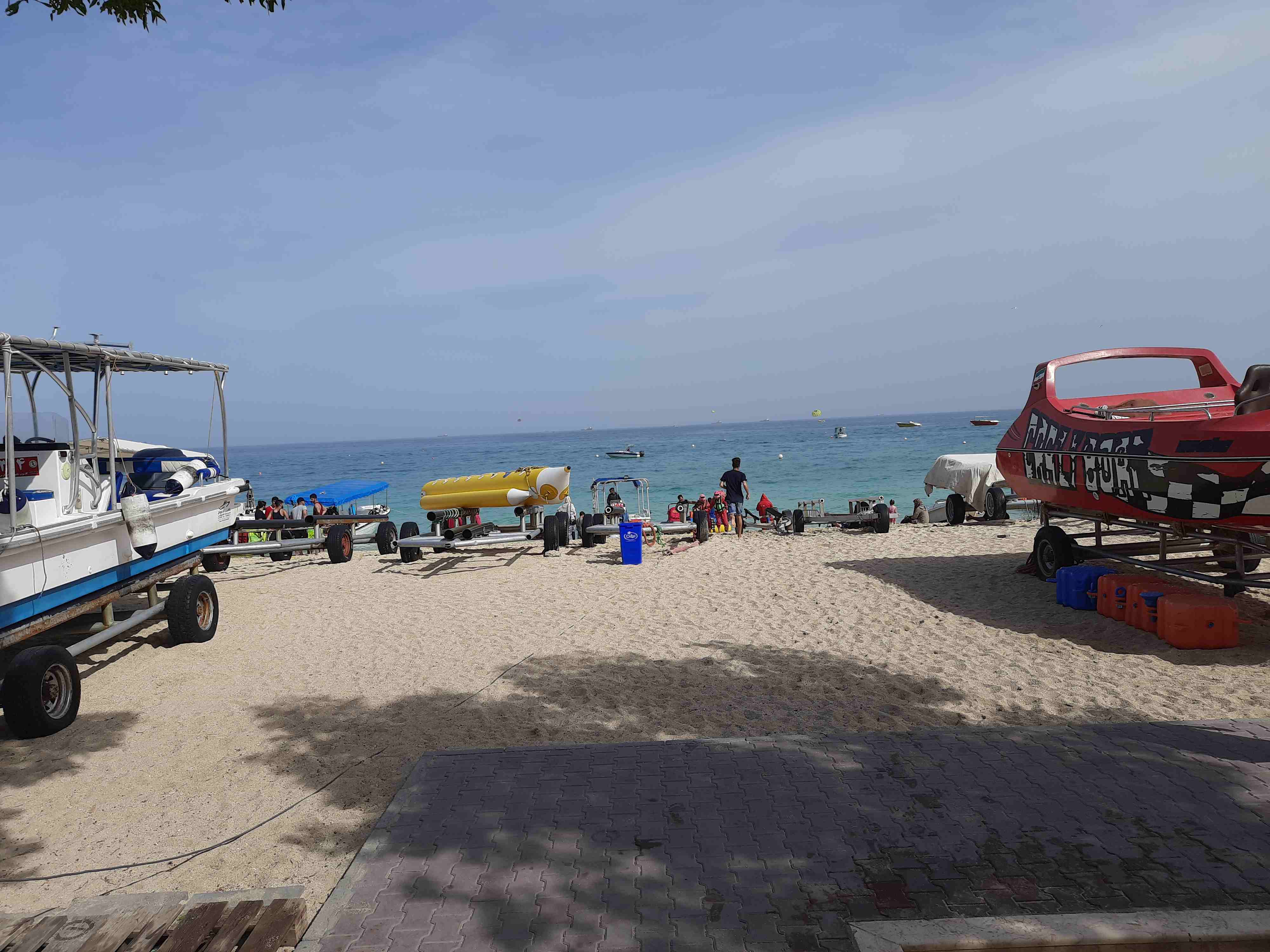 This is the beach from where all the water activity starts from. A somewhat strange thing of course is that women have to cover their hair or their bodies (even in a wet suit as this would still be too revealing) when they go on these activities. So for diving this meant that they had to wear a loose cape which is probably not too comfortable considering that you would want to get rid of the annoying things when going for a dive. This was also the case for other activities like boat riding, although I noticed that it seemed to be okay to wear a helmet (no hijab underneath necessarily required). Yet it would be wrong to assume that women were very strict about these rules: many just simply walked around with their hair open (at least for a short while) and didn't seem to be too much bothered by it. Again I felt that a lot of women here felt rather burdened by the strict dress codes while others seemed to be perfectly okay with them.