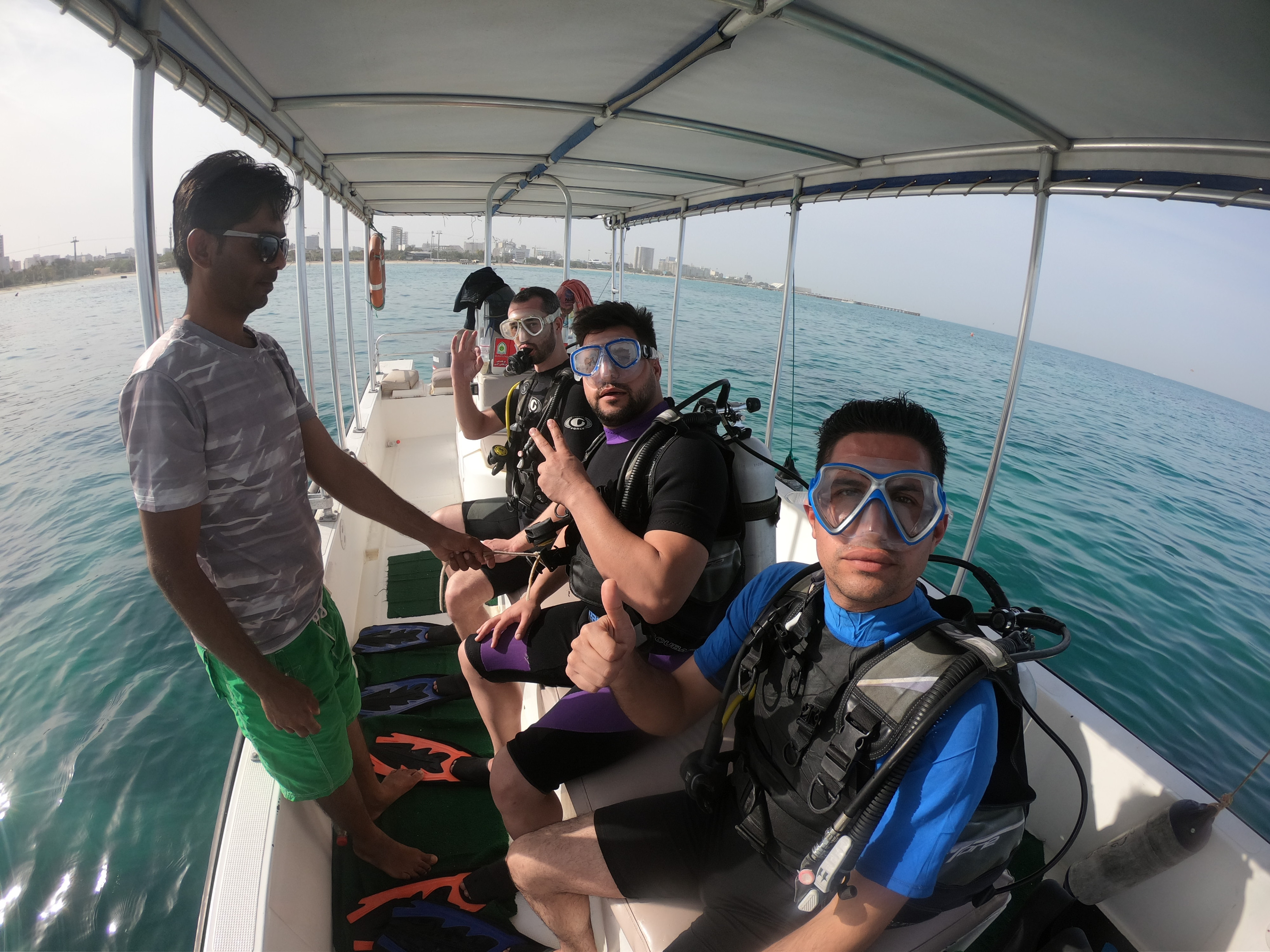 This is the men boat (yeah, women were on a different boat) and three of us were going diving this round. The others, opposed to me, had some previous experience, but there was an experienced diver going with us which made me feel much safer. So it was time for a quick briefing, checking the equipment and getting with it as accustomed and comfortable as possible and getting ready for the famous backwards splash (which made me feel a bit apprehensive :D)