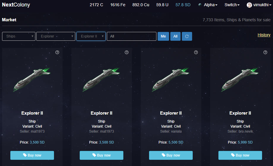 - The same ship can have different variations. Blueprints for some of these alternatives versions can be found in explorations. Don't be quick to buy them at https://nextcolony.io/shop