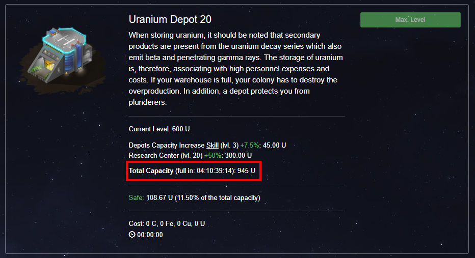 Keep your attention on these. Your depots can have a lower level than your mines. Just keep an eye on when the depots will be full. You can't do anything without resources. That should be the focus.