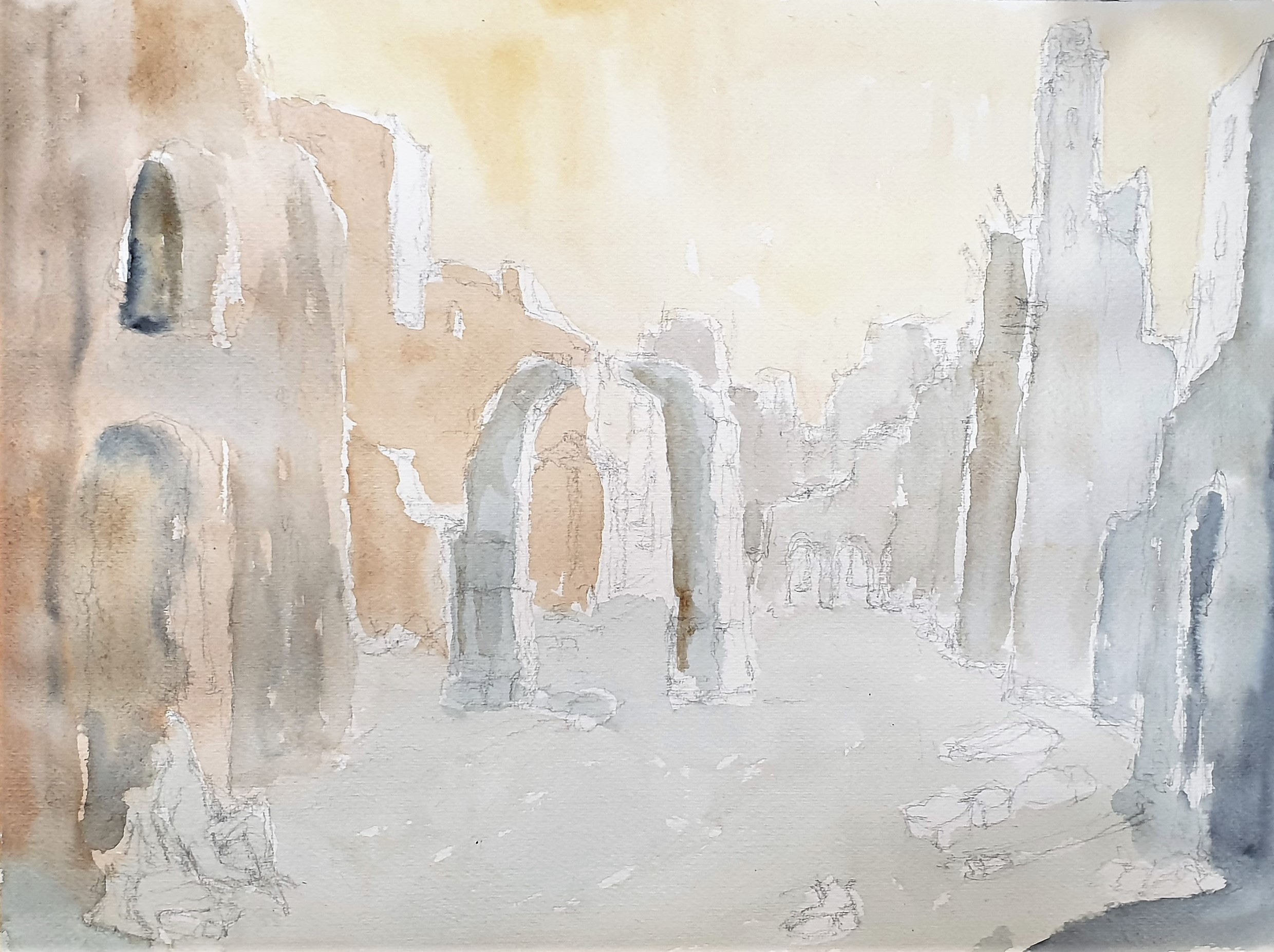 So I felt the need to make a watercolor of those scenes by sticking from my memories and my feelings.