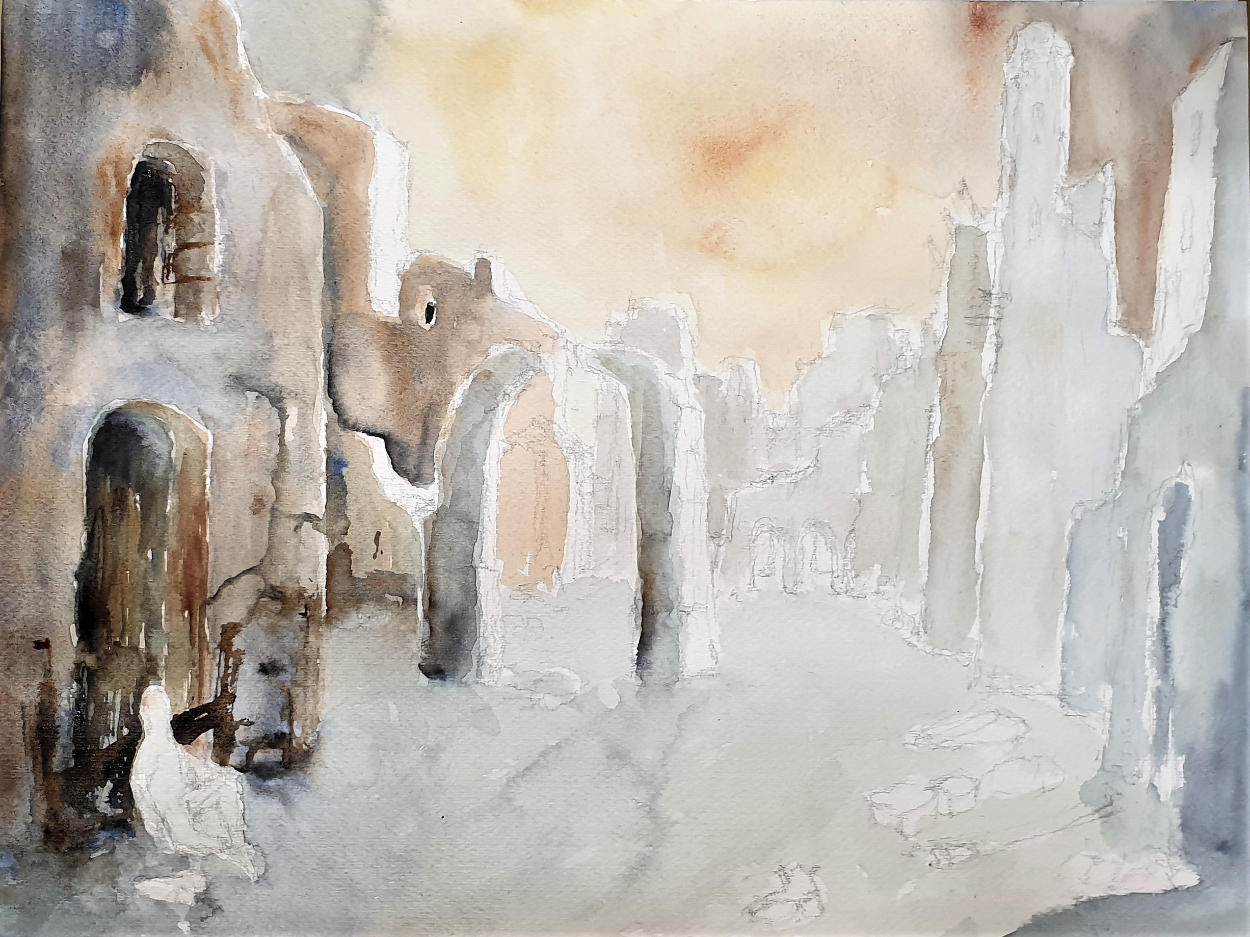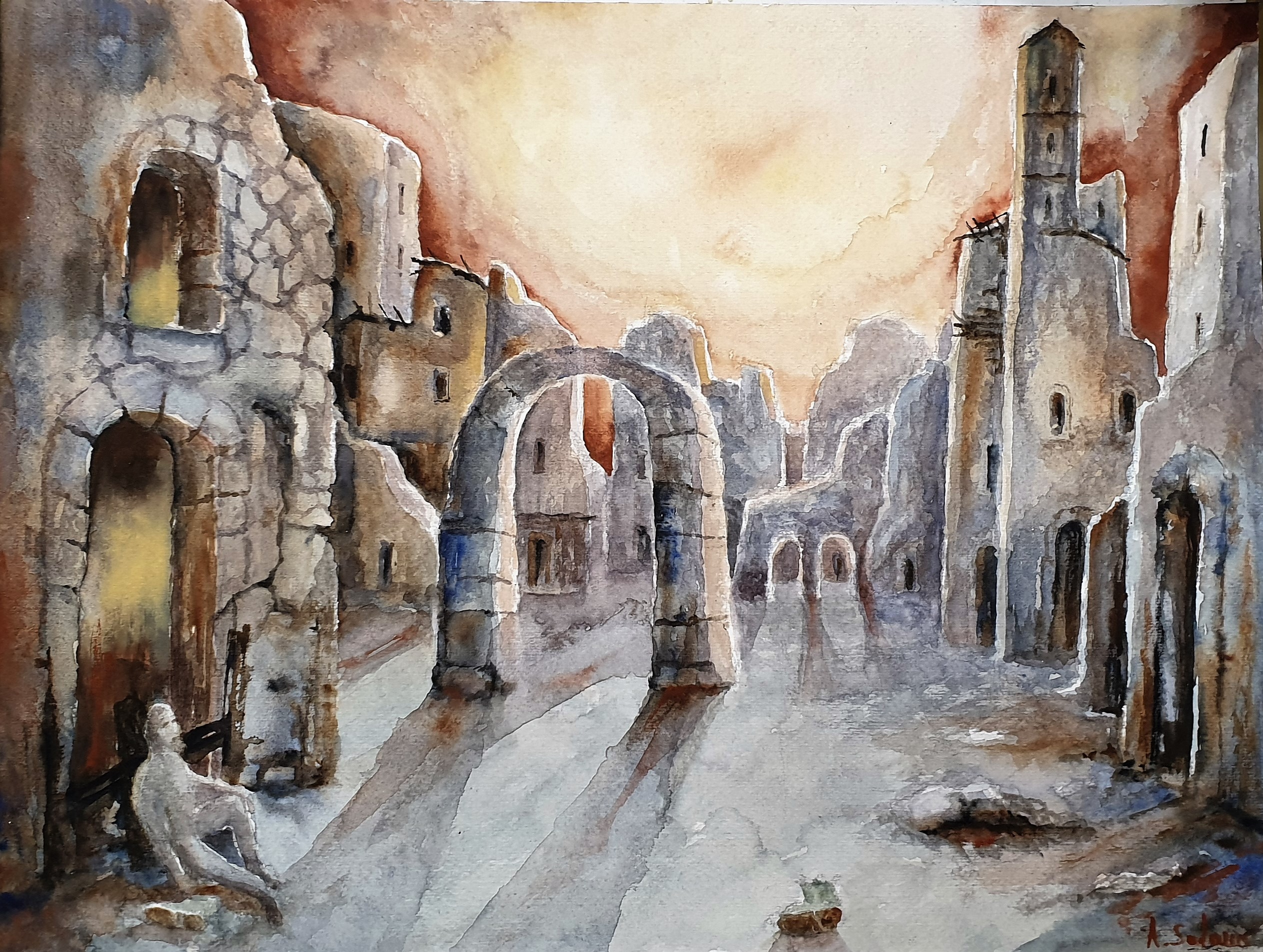 Così ho sentito il bisogno di realizzare un acquarello di quelle scene attiggendo dai miei ricordi e dalle mie sensazioni.