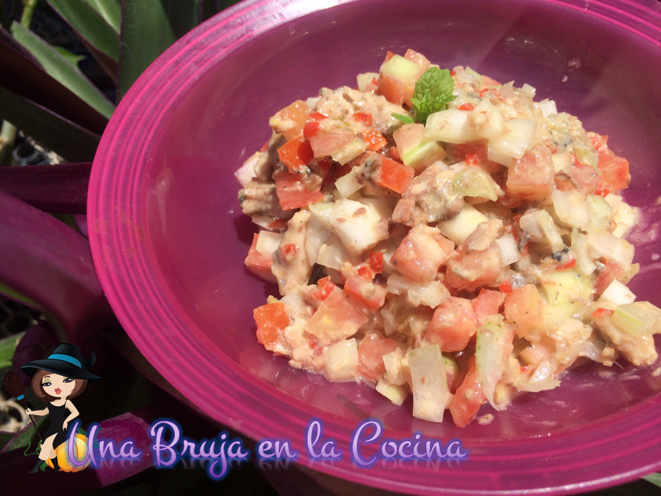 I have fallen in love with vegan mayonnaise, made with aquafaba and soya oil (I owe them the recipe), and although I didn't like to put mayonnaise on fresh salads before, with this I dared to put a little, the result was great, also with the touch of spice that should not be missing, it is simply delicious.