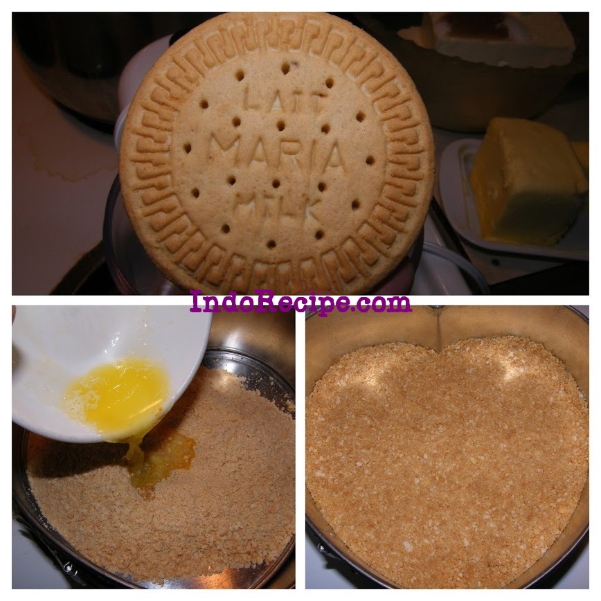 - Mix graham cracker crust with melted butter, press bottom side up on an 7 inch springform pan