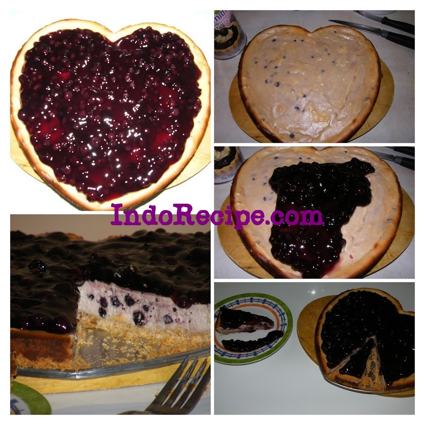 - Just before serving, top cheesecake with leftover blueberry pie filling and enjoy :D