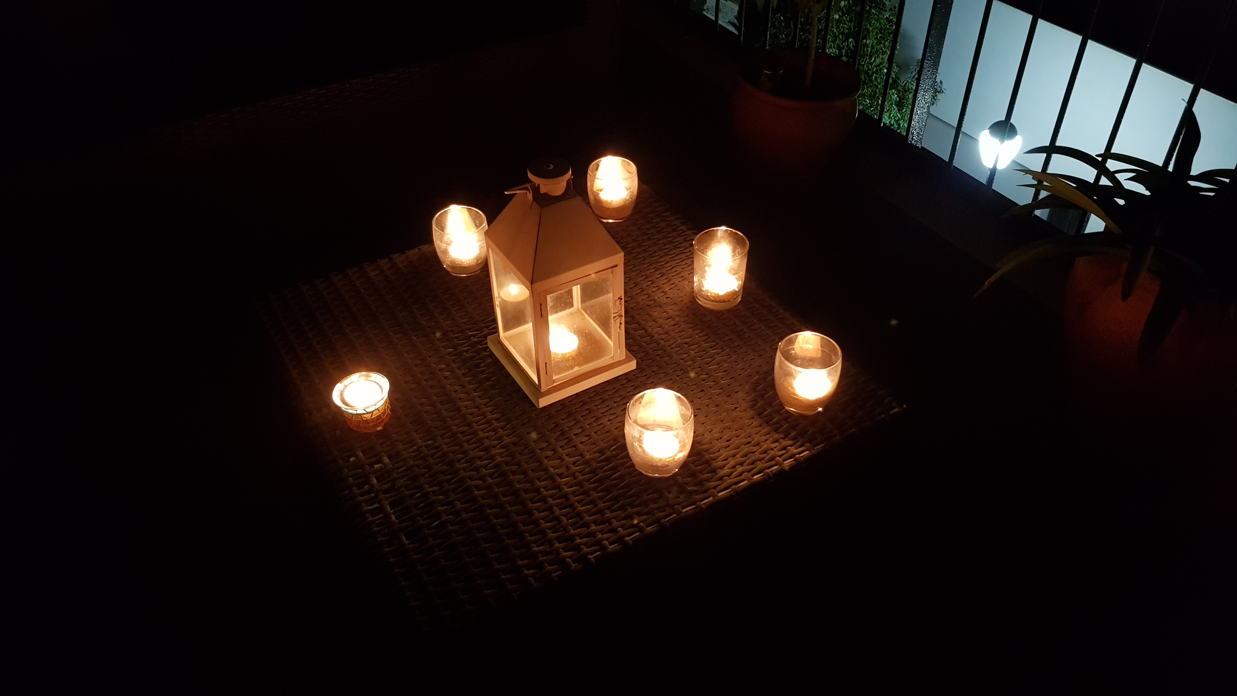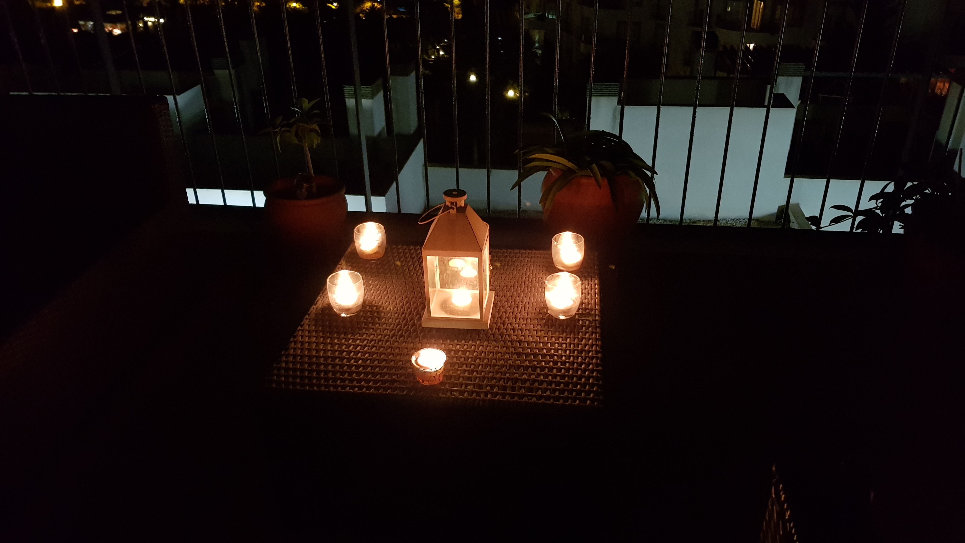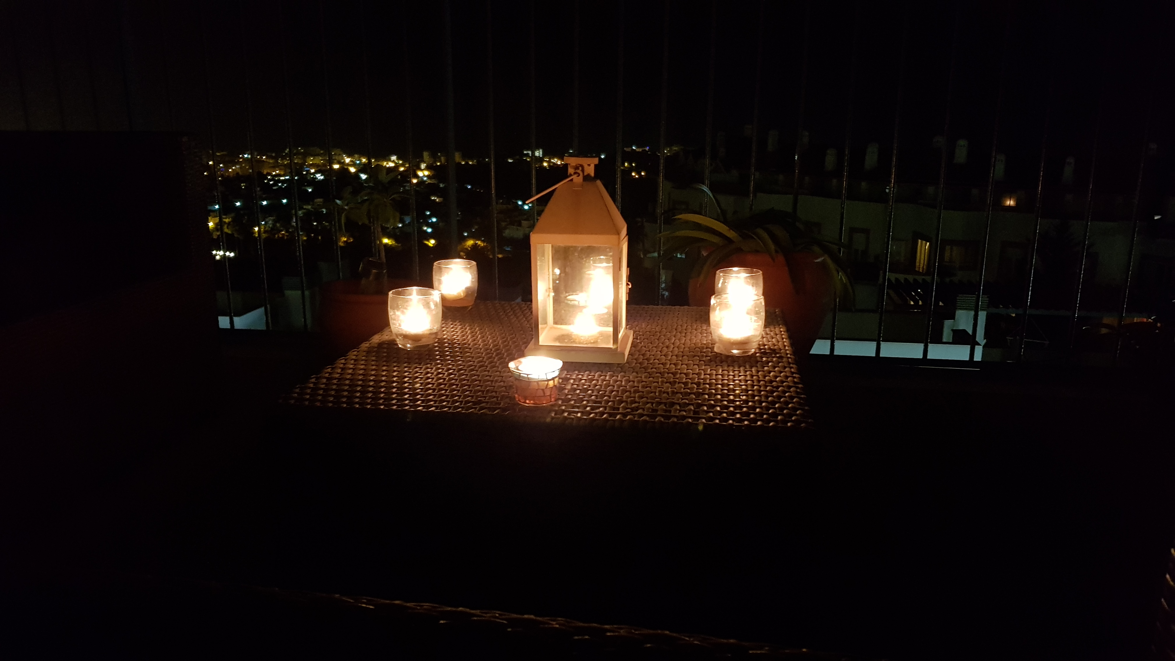 Siempre me ha gustado tener alguna vela encendida en casa por lo cual una excusa para dejar la terraza para el aquelarre de alguna bruja no me disgustaba demasiado, son velas de apenas un par de horas pero la imagen de la terraza es durante ese tiempo un poco siniestra y misteriosa.