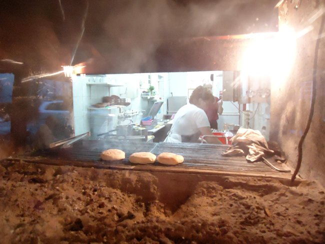 And this is a window onto the terrace from the kitchen. Delicious white buns - Serbian bread - are baked in the foreground.