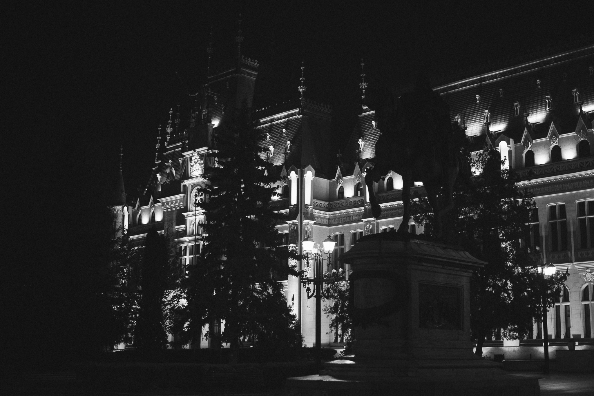The nice thing about the monuments in Iași is that they have lights on them. They are in pristine condition and the shadows that are being cast, from underneath the details of the architecture, can make for some exquisite detail shots in my opinion.