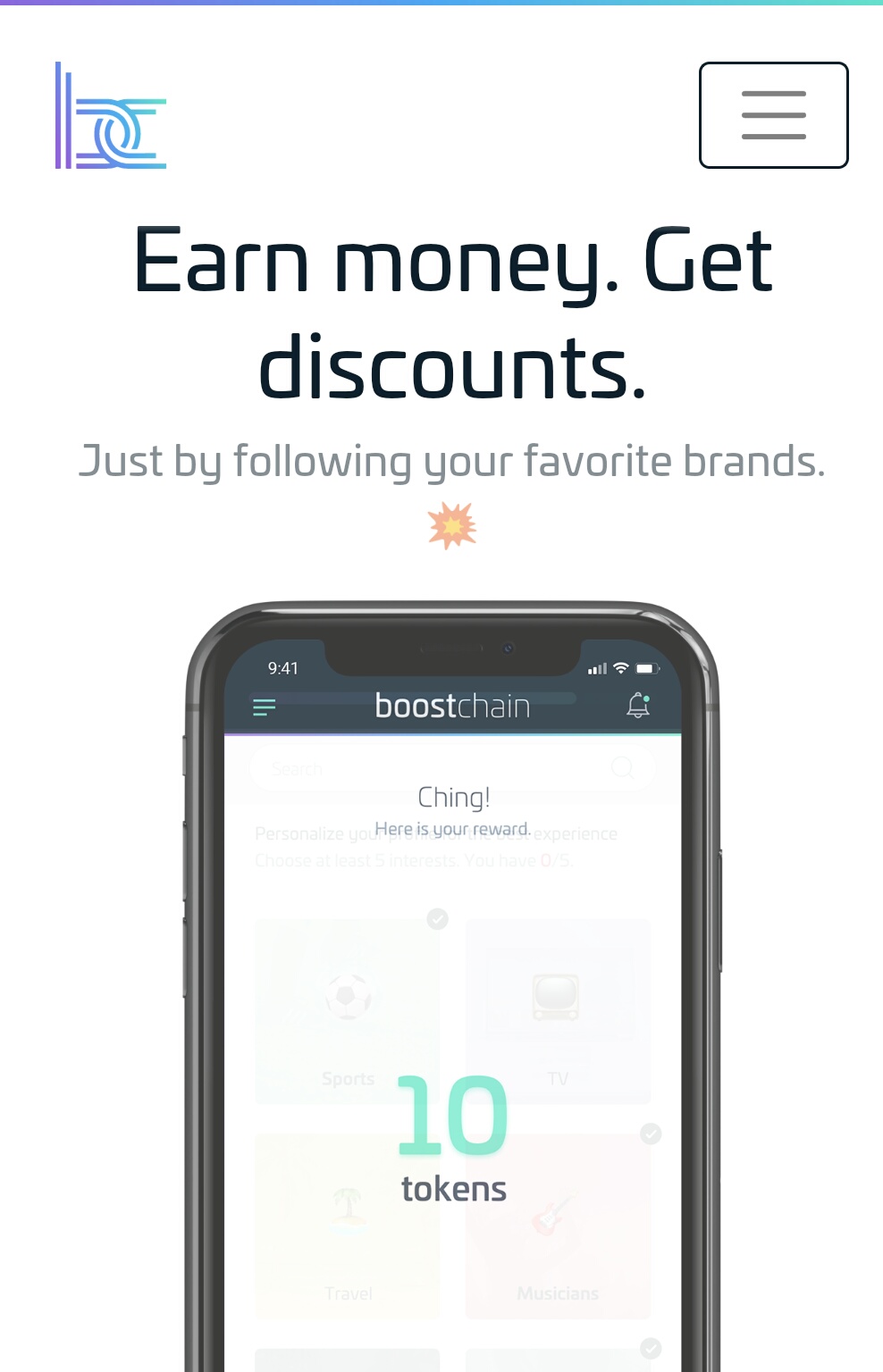https://www.boostchain.ioEnter referral code: 5e77d483e7a1a100e413862f (mandatory)