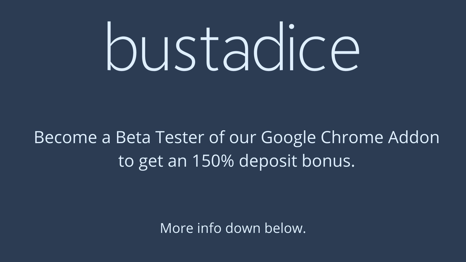 Every beta tester will be instantly rewarded with an 150% deposit bonus for his next deposit made on https://bustadice.com/! It isn't great so far?