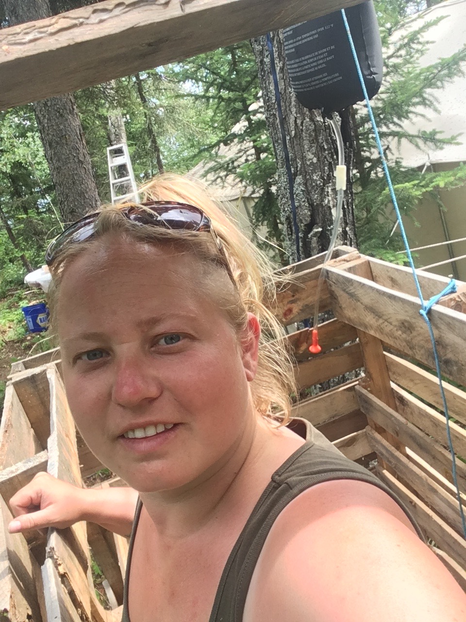 While Jay was doing that I put together a temporary shower with some extra pallets we had.