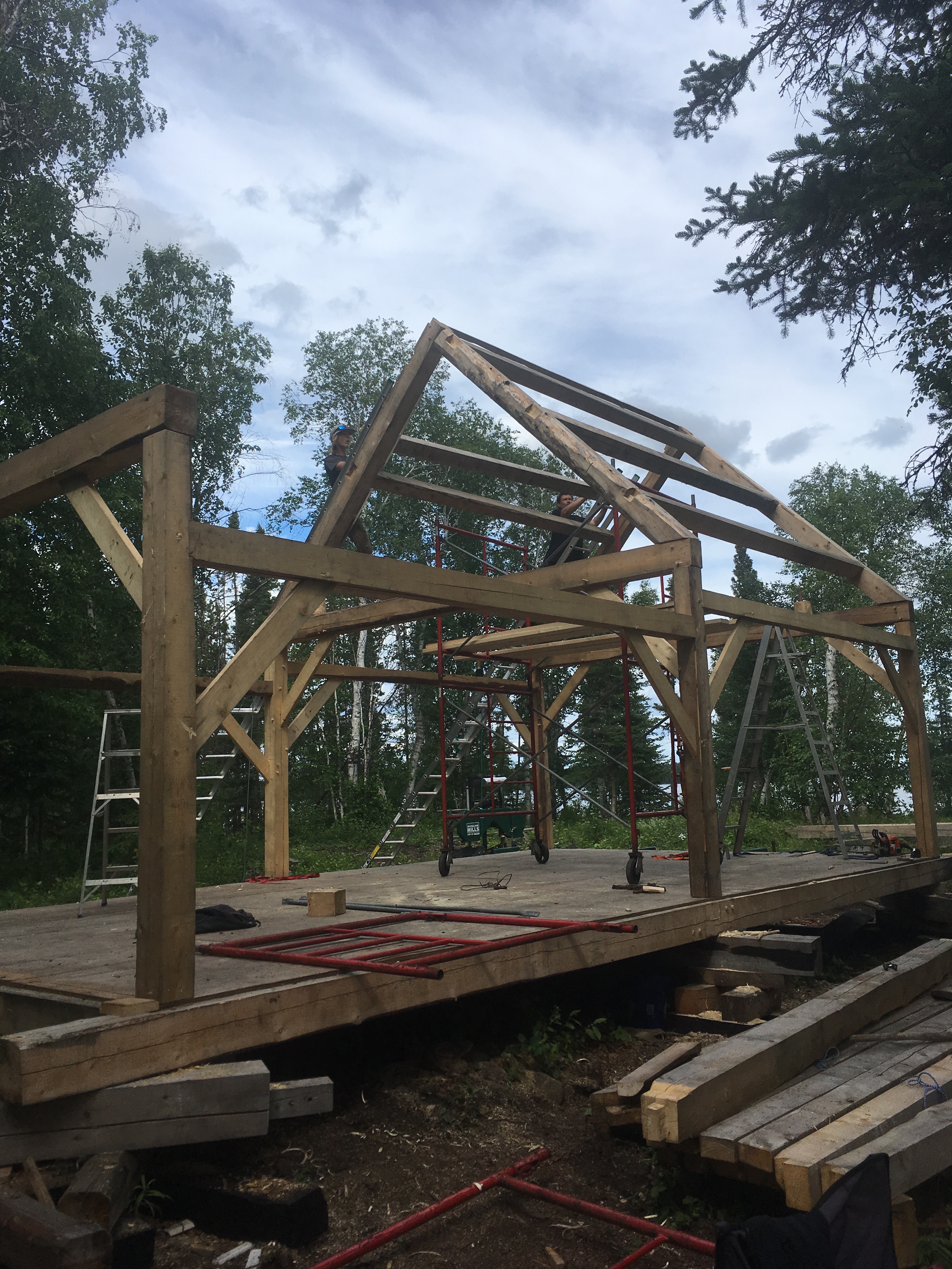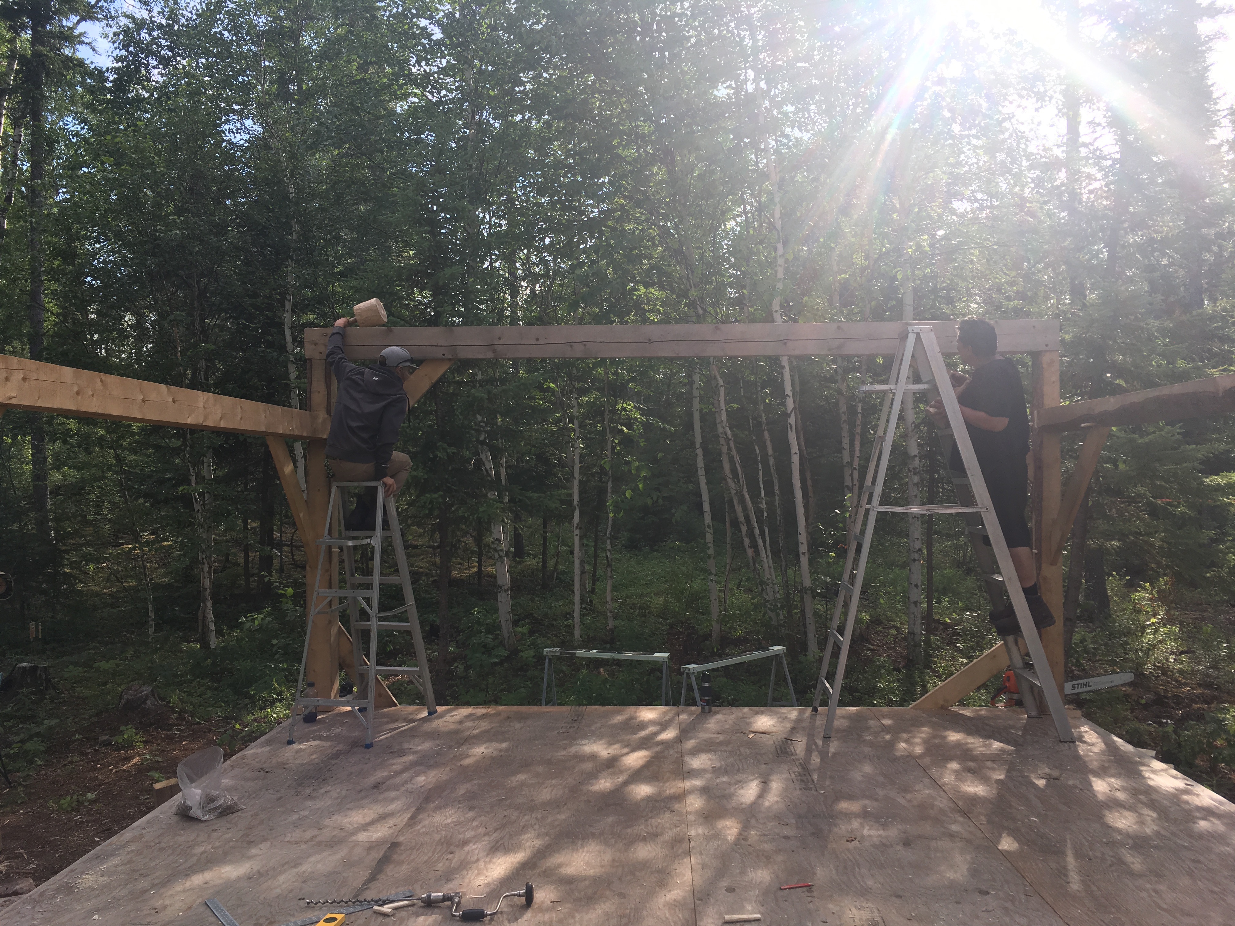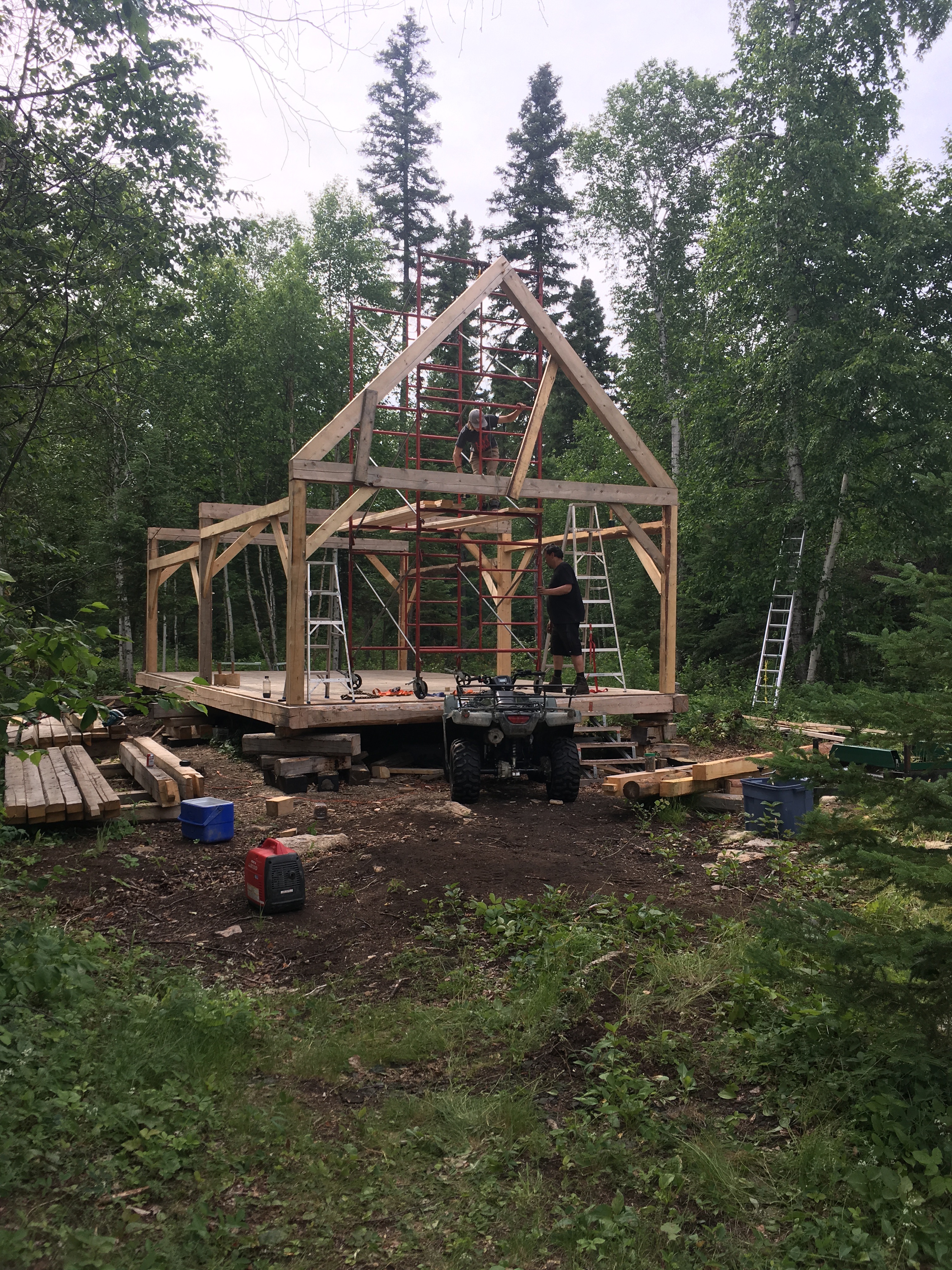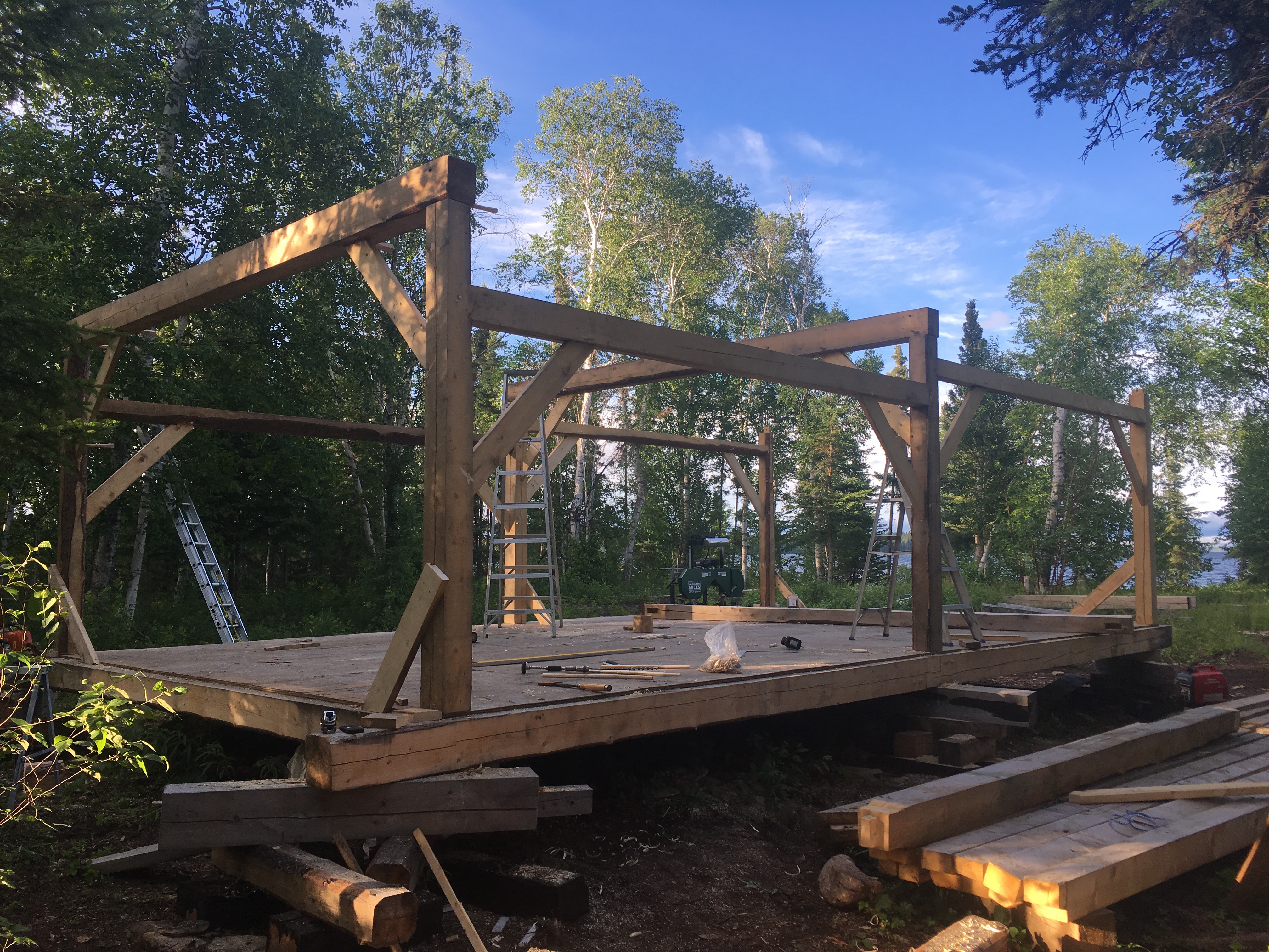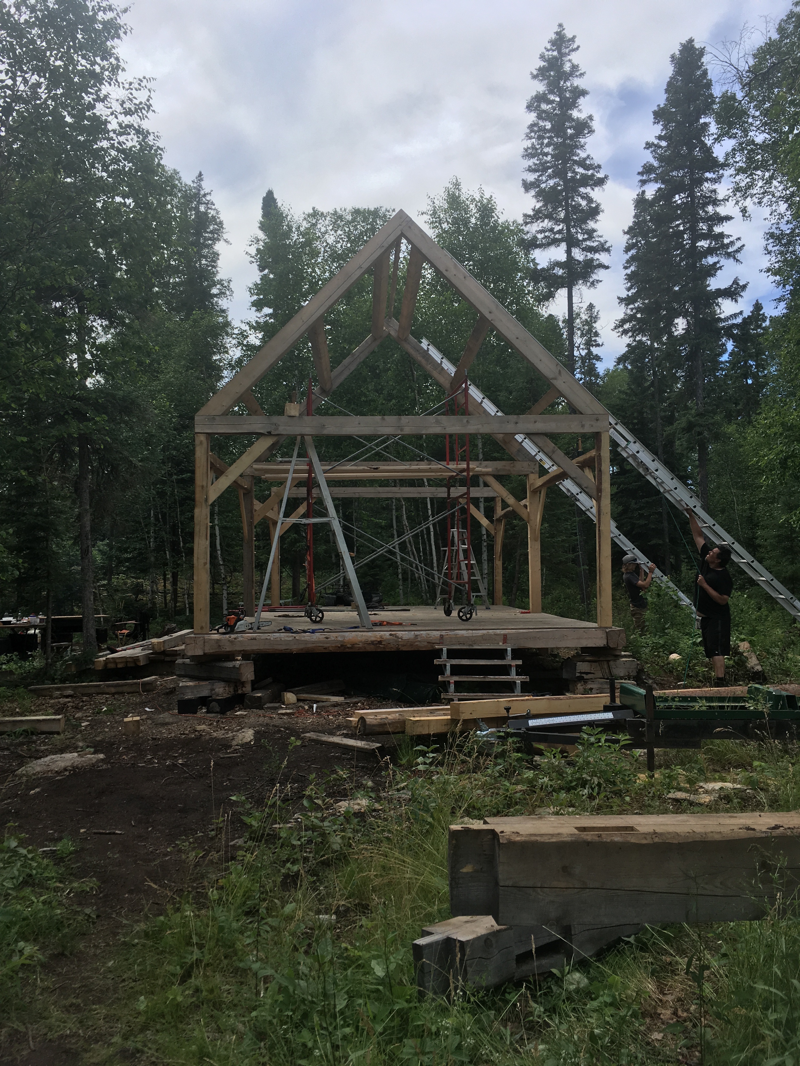 Jay and I have been at the cabin for just over a week working to get the frame raised. Well, we didn't get the entire frame raised this trip, we had one rafter and 6 purlins left to get up but ran out of days to finish. Oh well, there is always next trip out, lol.