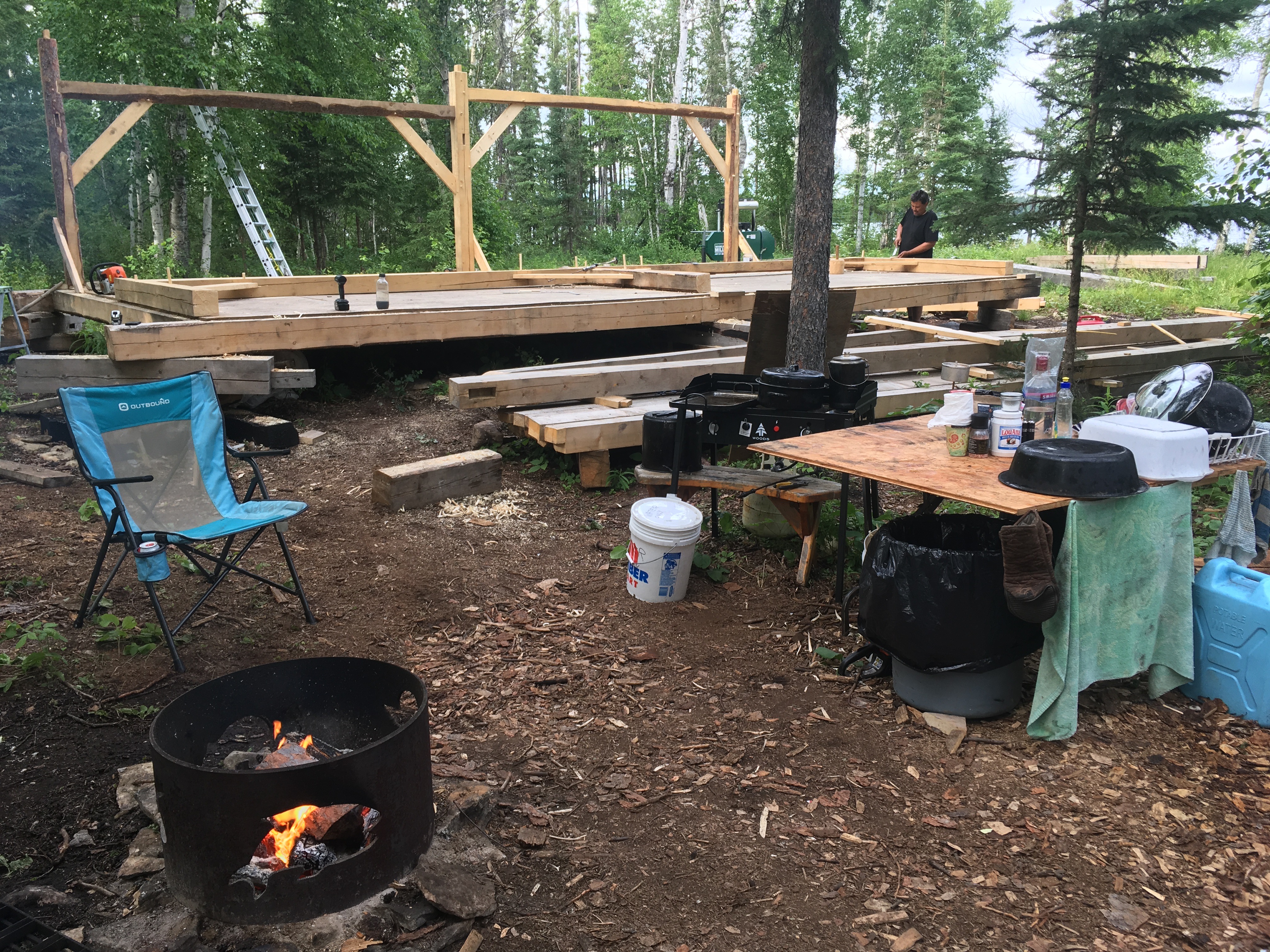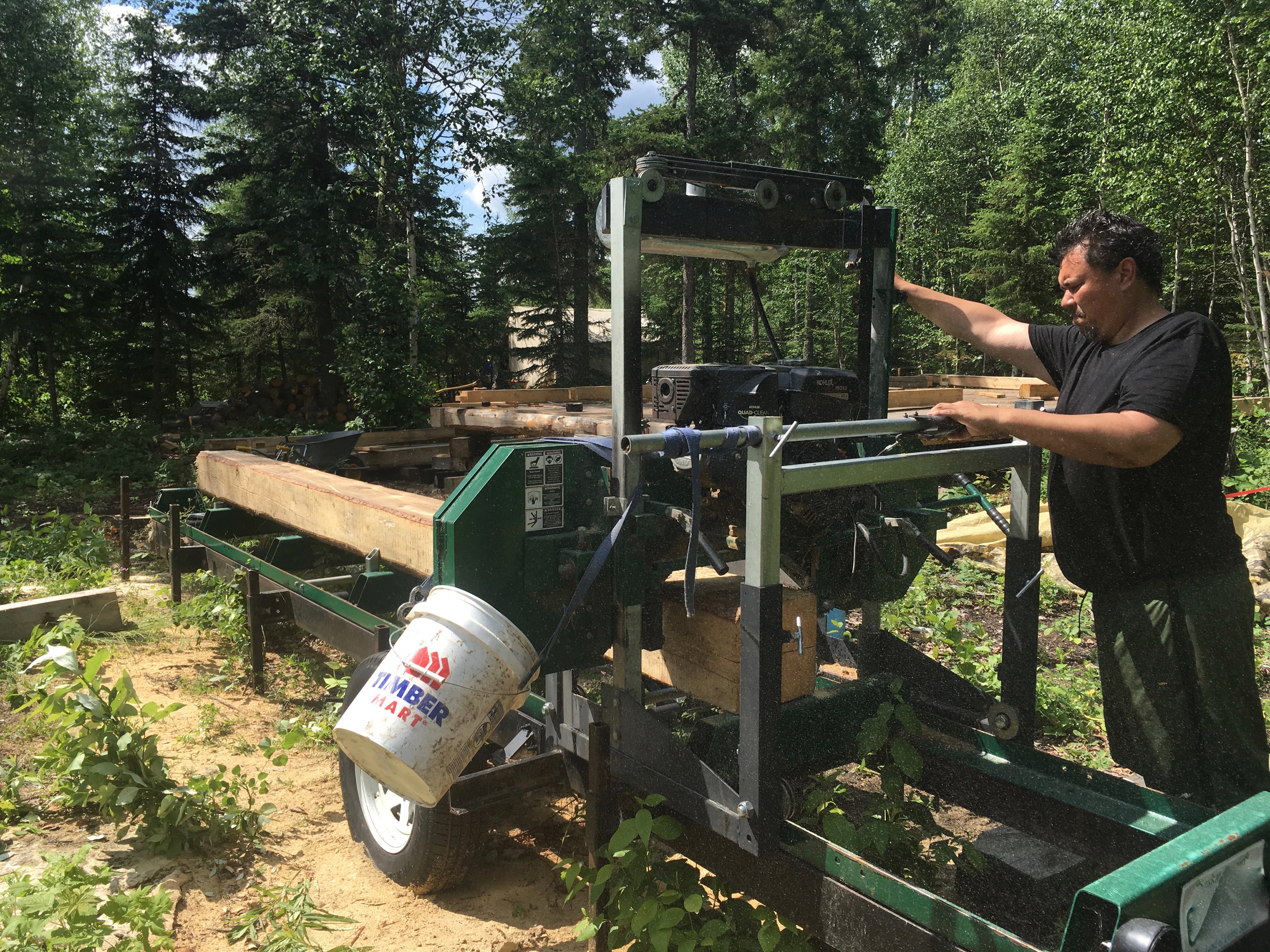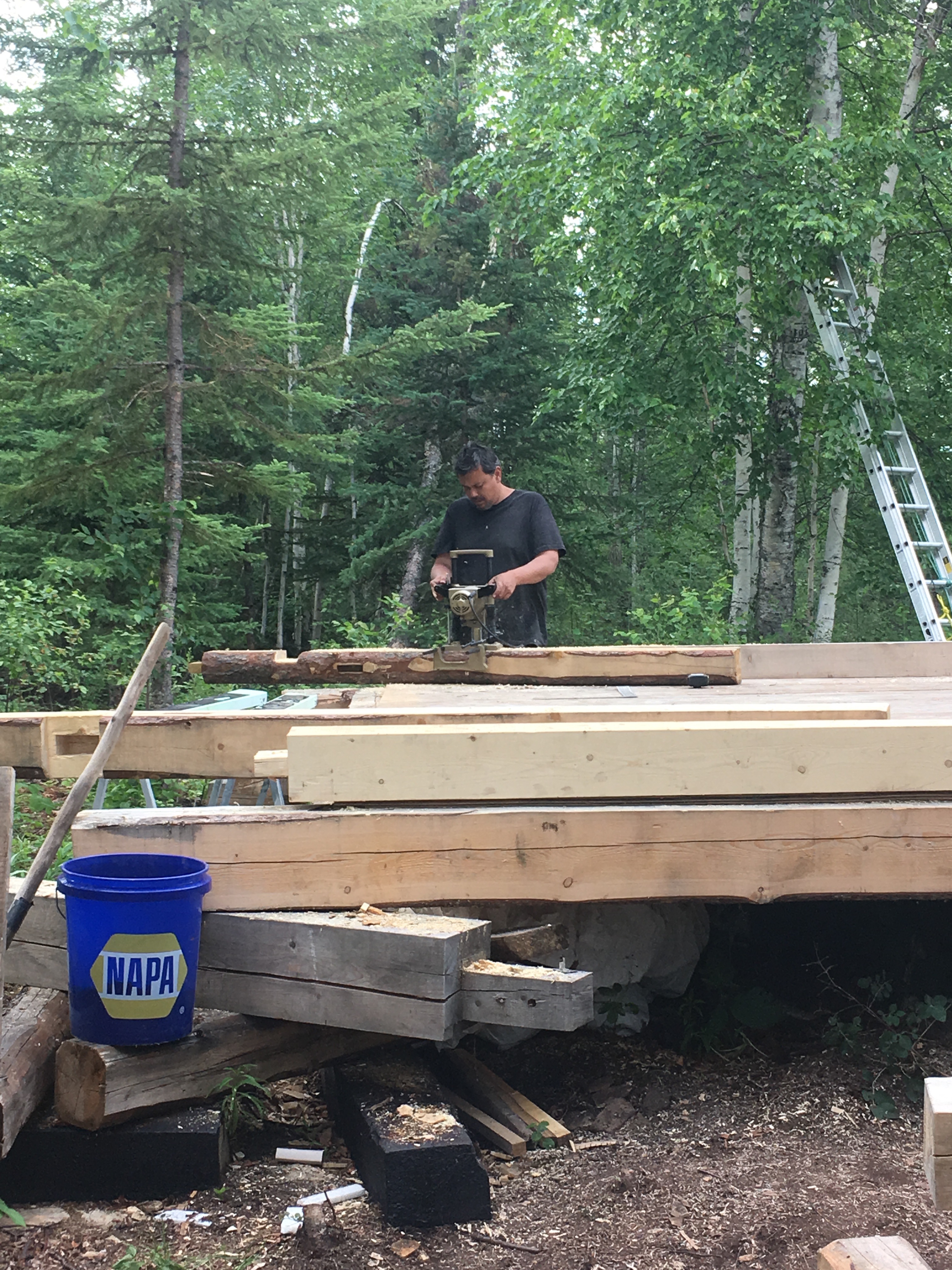 The second day, we got our camp set up and got work. Jay milled up a big timber for the tie beams.