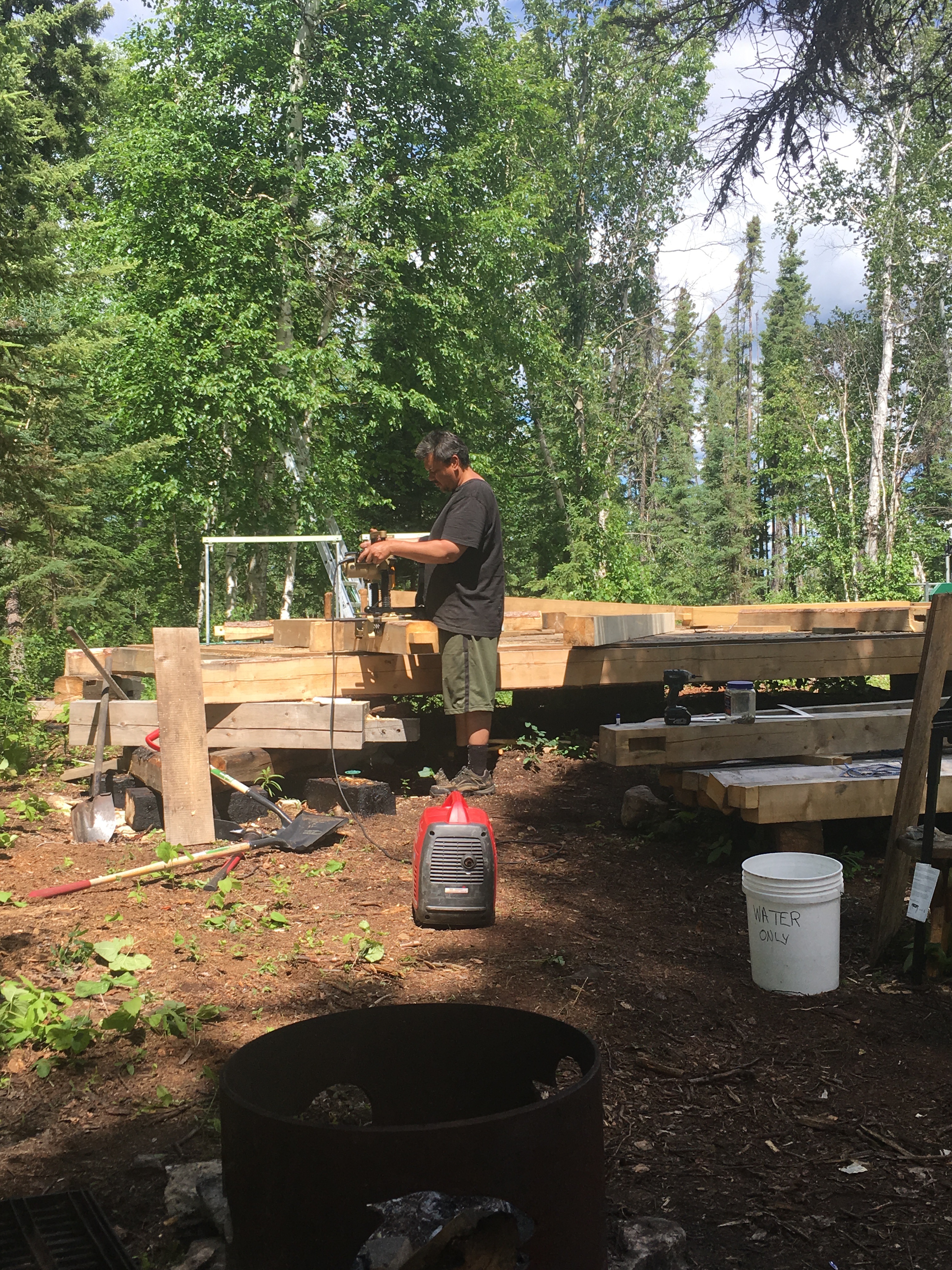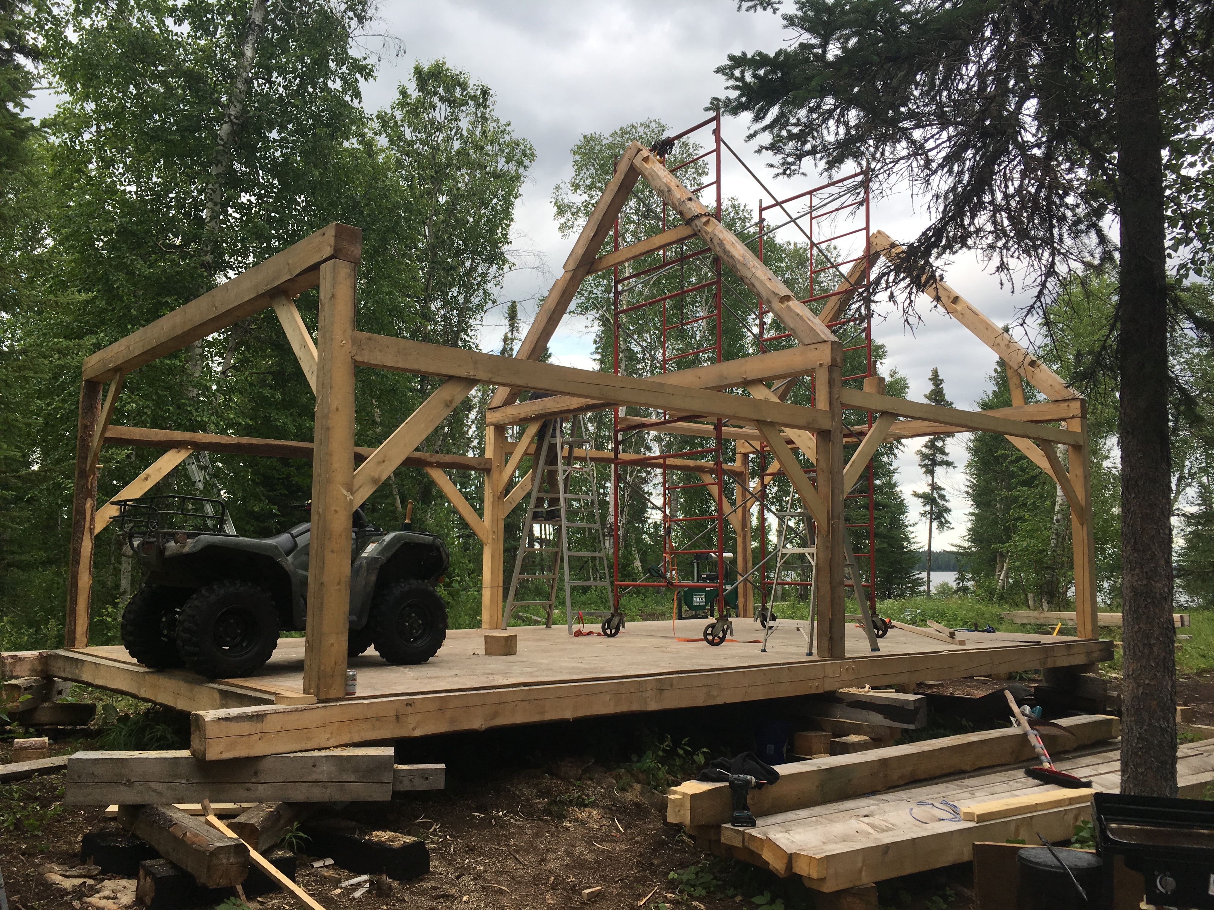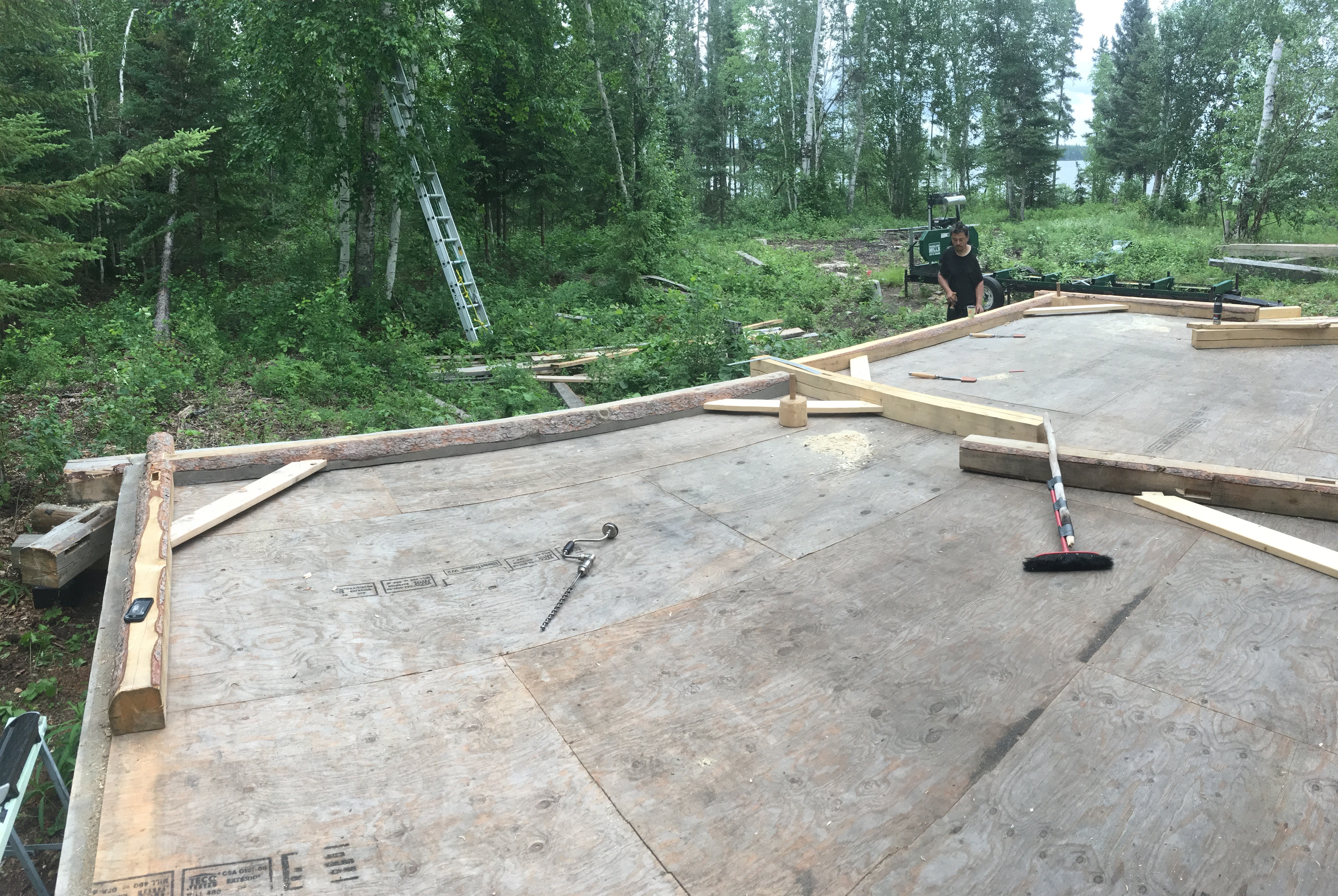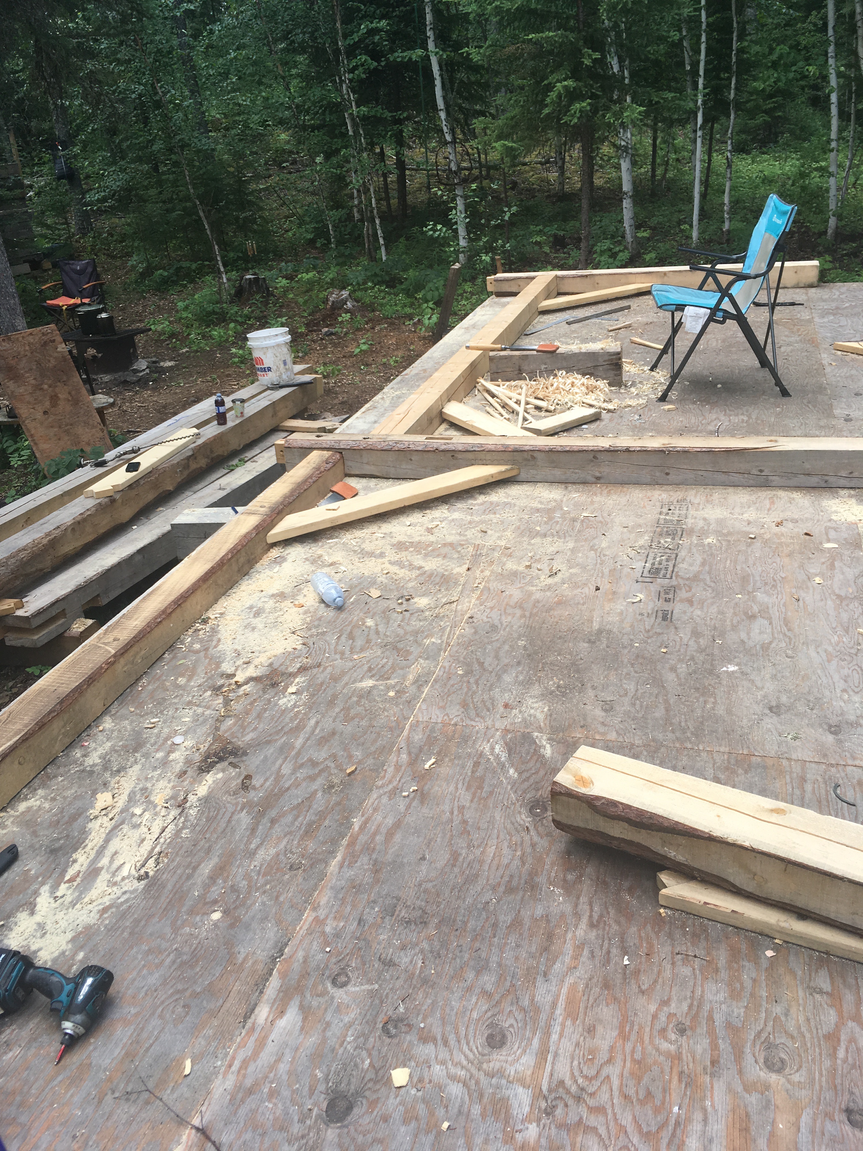 We moved the tie beams to the cabin floor where Jay made the measurements and cuts.