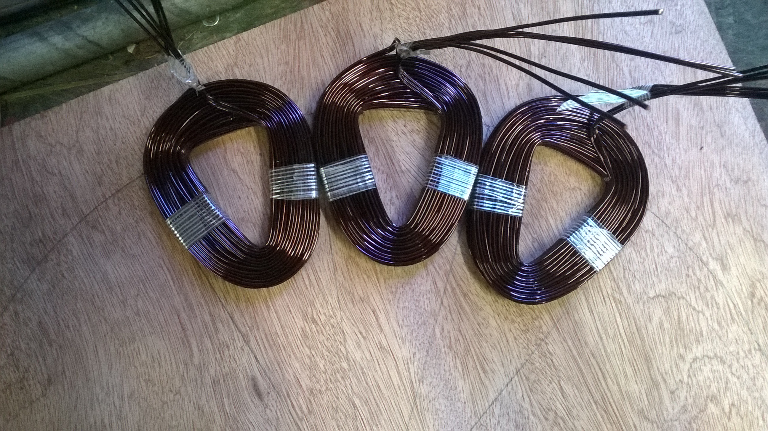 Eventually all the coils are done and positioned in place to allow soldering them together