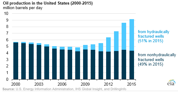 Here are charts showing that by 2015, near the exit of the Obama administration, fracking had become the primary source of US fossil fuel production. (During his presidency, Barack Obama expanded US fossil fuel production more than any other president in US history, before or since.)