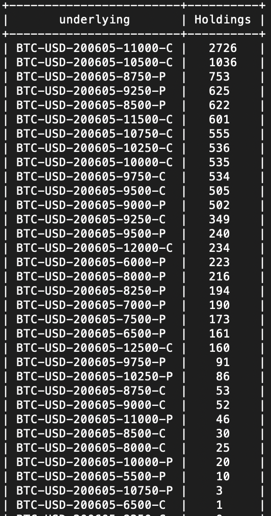 2020-6-2日,比特币终于再次突破了10000美金,来看看期权持仓数量吧