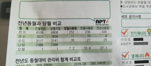 문득 며칠전에 받은 관리비 명세서를 들여다봅니다.