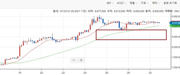 이오스의 4시간 흐름이 비트의 30분단위 흐름과 비슷하네요.