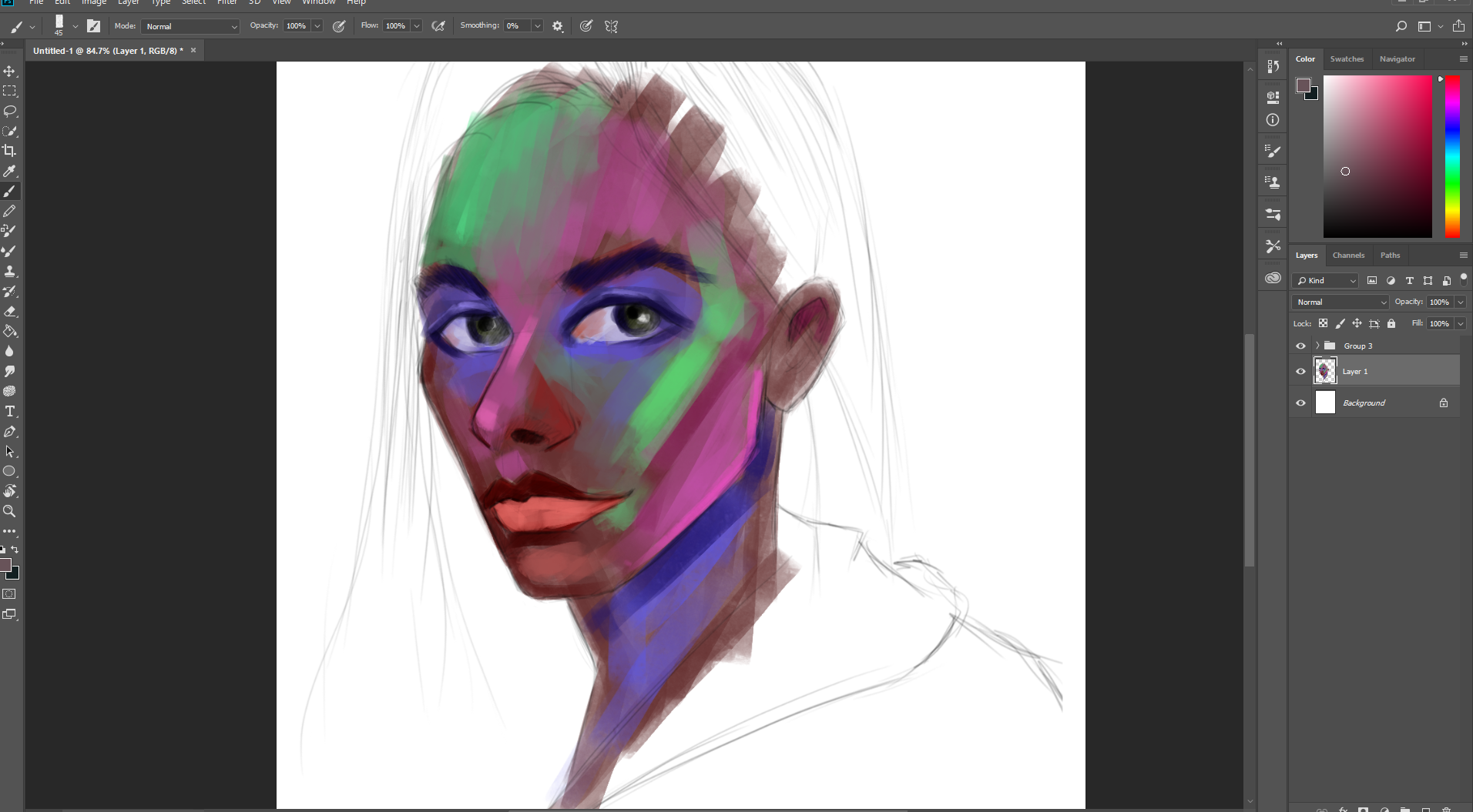 Yeah, that is a lots of brushes. Today i just used one. and a very few layers. Although i realized that i should stop bringing in the green color into my painting a lot less. that just does not go with a face.