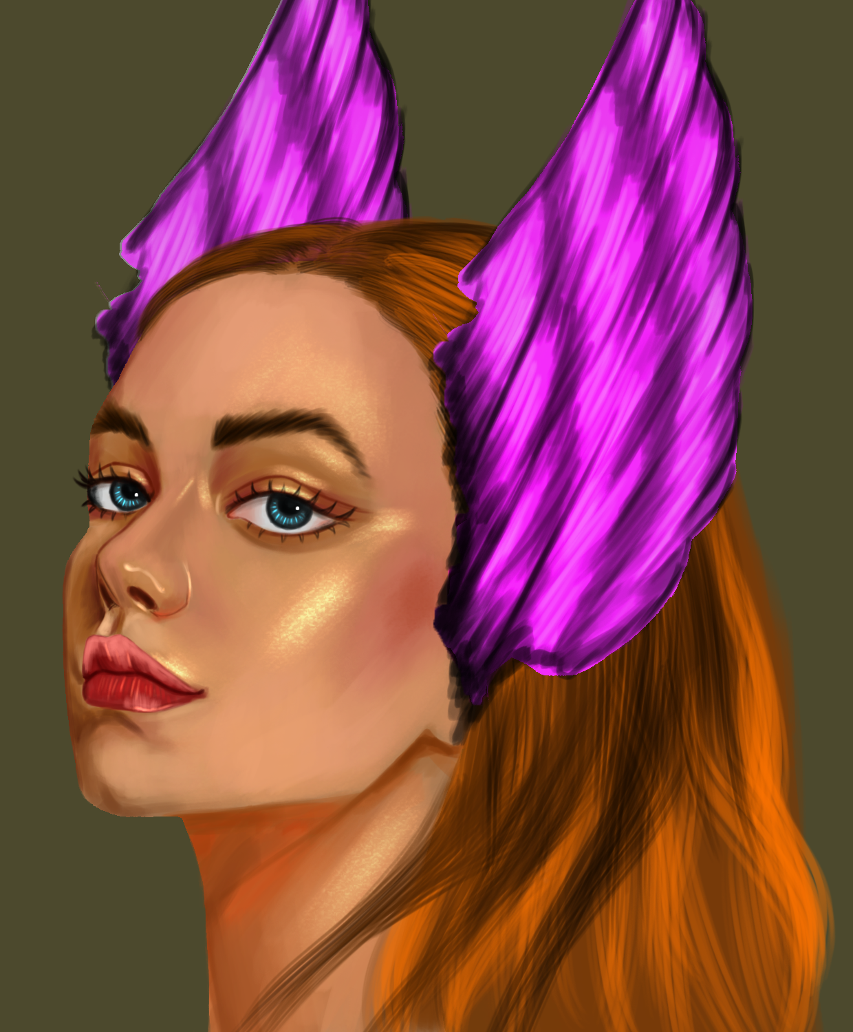 One of her style has this amazing wings on head. Those wings are black and she paints them amazingly realistically. Someday i would really want to achieve her level of skills. The details of her paintings are astounding.