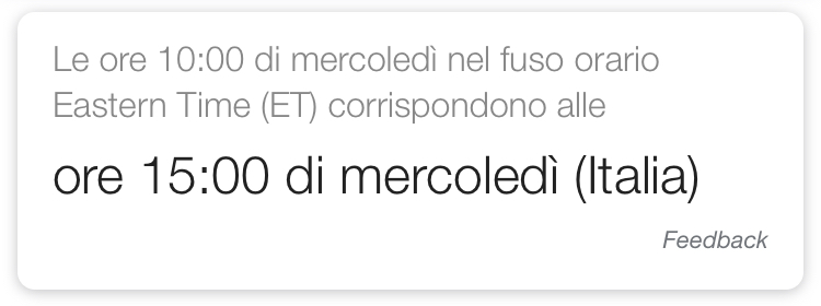 N.B. le 10.00 EST corrispondono alle 16.00 italiane, infatti EST ha -5h su Greenwich mentre l'Italia è un'ora avanti +1h