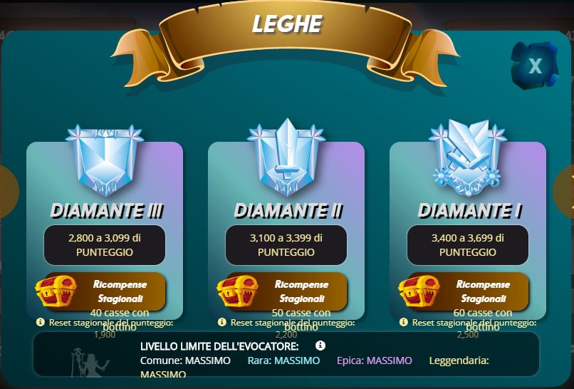 - La quantità di trofei che perdete a fine Stagione, dalla Lega Diamante 3 in su, non varia più e resta costante, ossia 900 trofei
