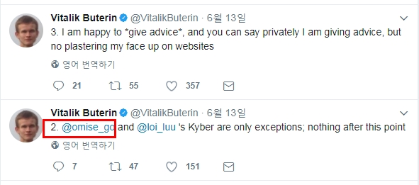 비탈릭은 지난 13일 본인의 페이스북에 '어드바이스'주는건 좋아하지만, 본인을 홍보목적으로 웹사이트에 올려놓는건 싫다면서, 앞으로는 더이상의 '공식적으로 어드바이저로 참여하지 않겠다' 공표한바 있는데요.