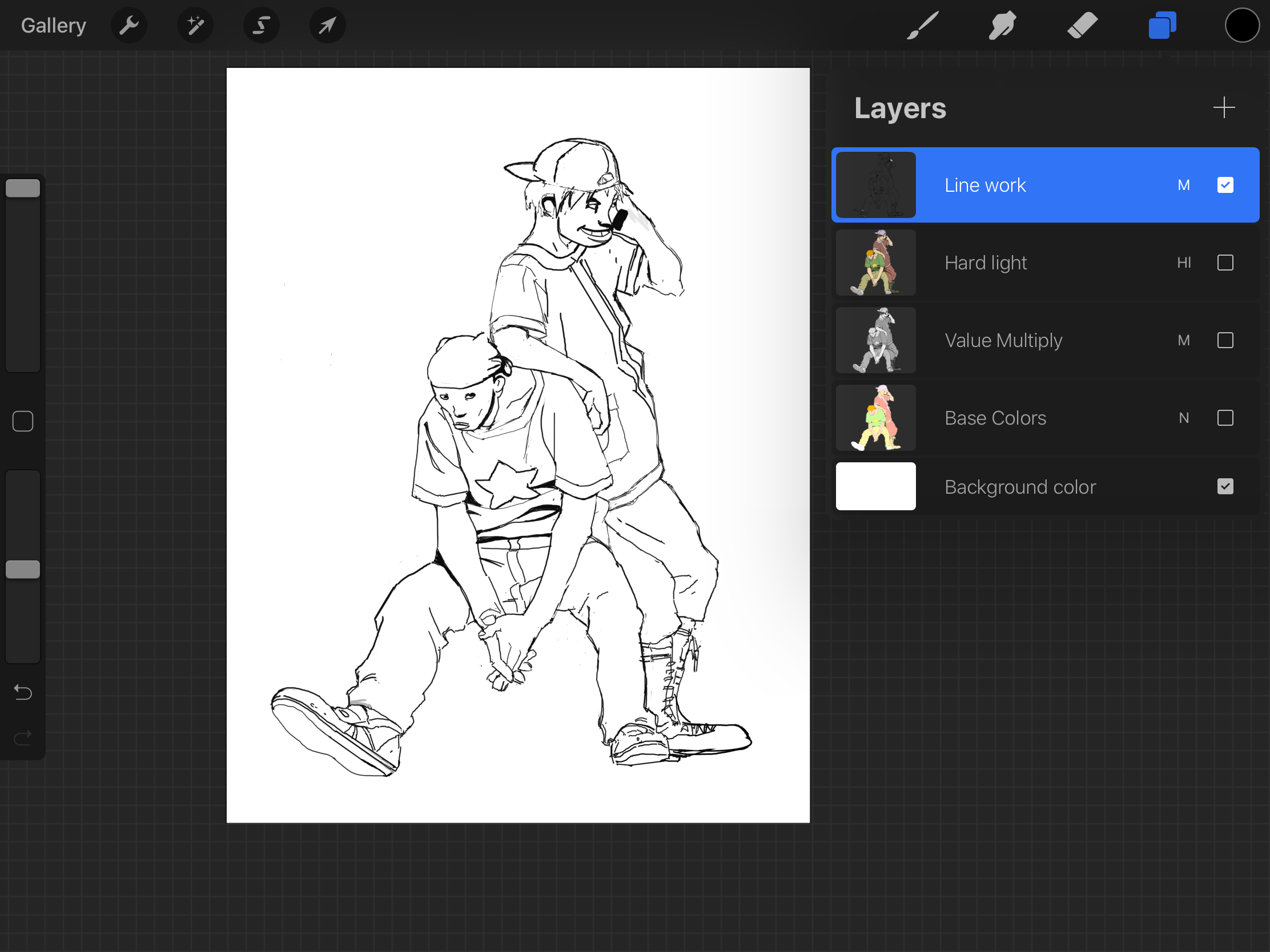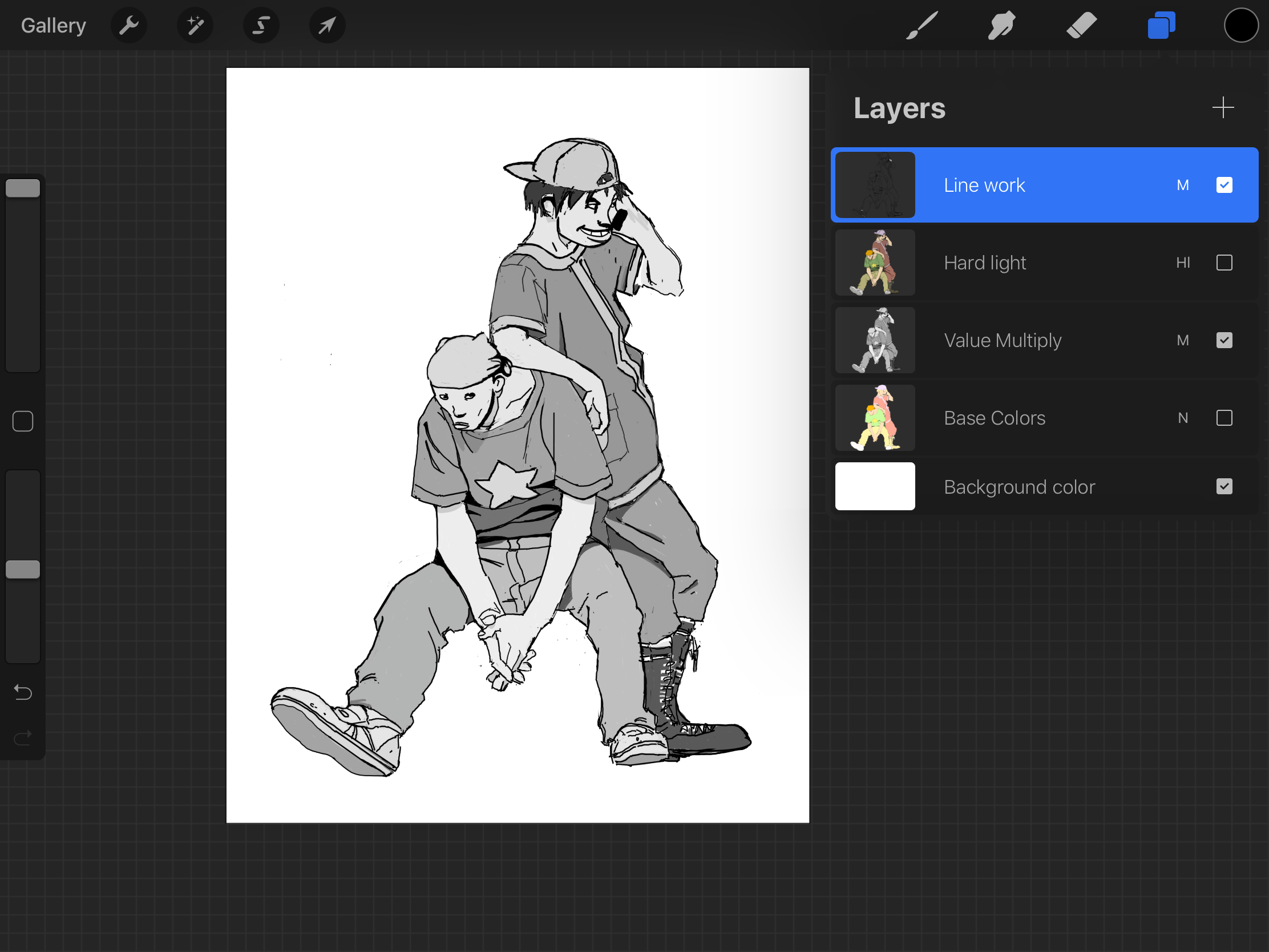 The most impactful element of color design is choosing the values, shades of gray, that make up the image. In here, I looked at the original artwork and guesstimated what the values are. Squinting helps, and always asking "is this lighter or darker?" If the two colors you are comparing have a similar value, they would blend into one another when you squint your eyes.