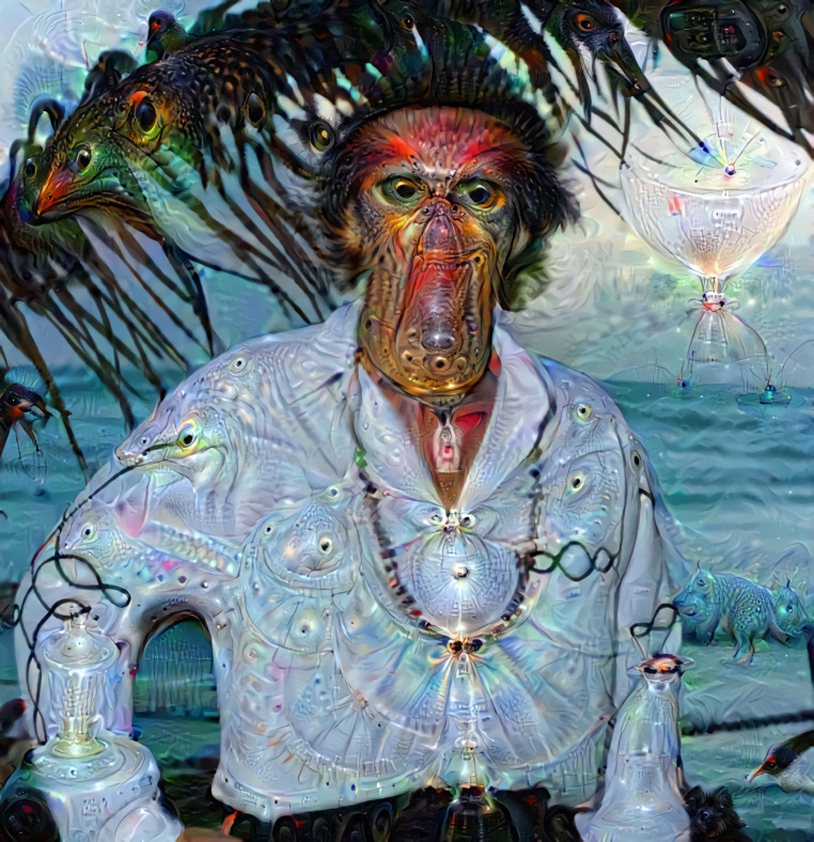 Deep Dream with the default set often gives a bit nonsensical renders (the initial dataset had way too many dogs in it), but the way it reinterpreted your face makes you look like a space paon !