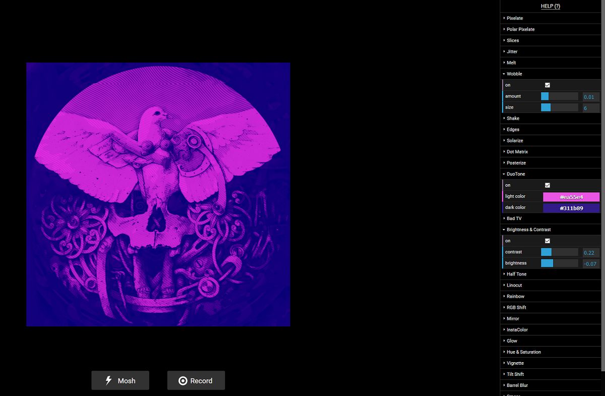 I tried that too, but the results were too repetitive for me and that got boring pretty quick. Adjusting the outcome with all the sliders and controls however is quite addictive, I must say. And although, one could most likely do it all in After Effects as well, with PhotoMosh, it is a lot more intuitive.