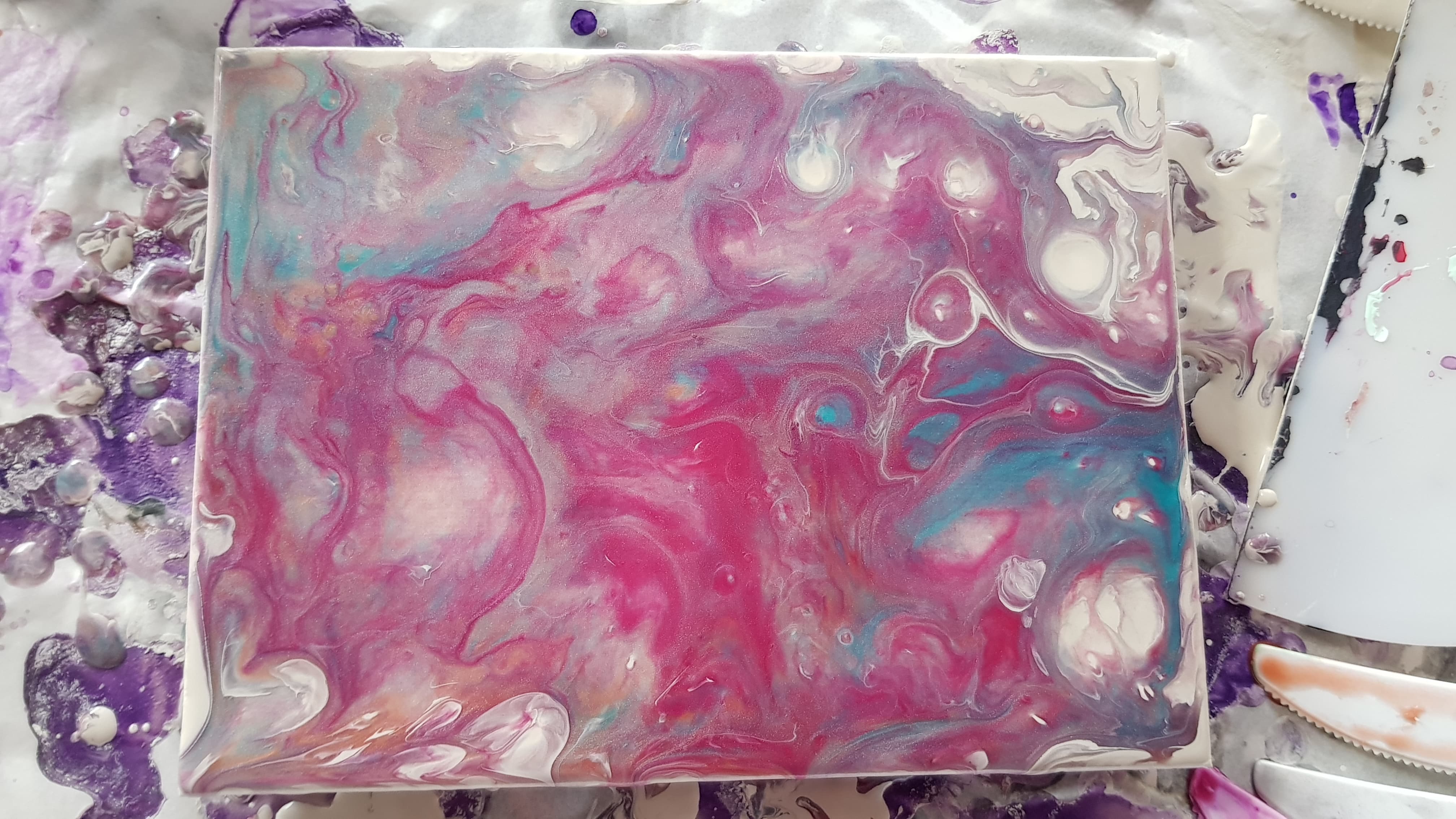 I'll be talking along (I've gotten used to having a chat from last week's garden vlogs). I could also be singing along (sorry! I cant help myself) but mostly you'll get to see the pour. You'll also see bottle caps because I got so caught up with moving the paint I forgot to look at the camera to see if the canvas was still visible lol