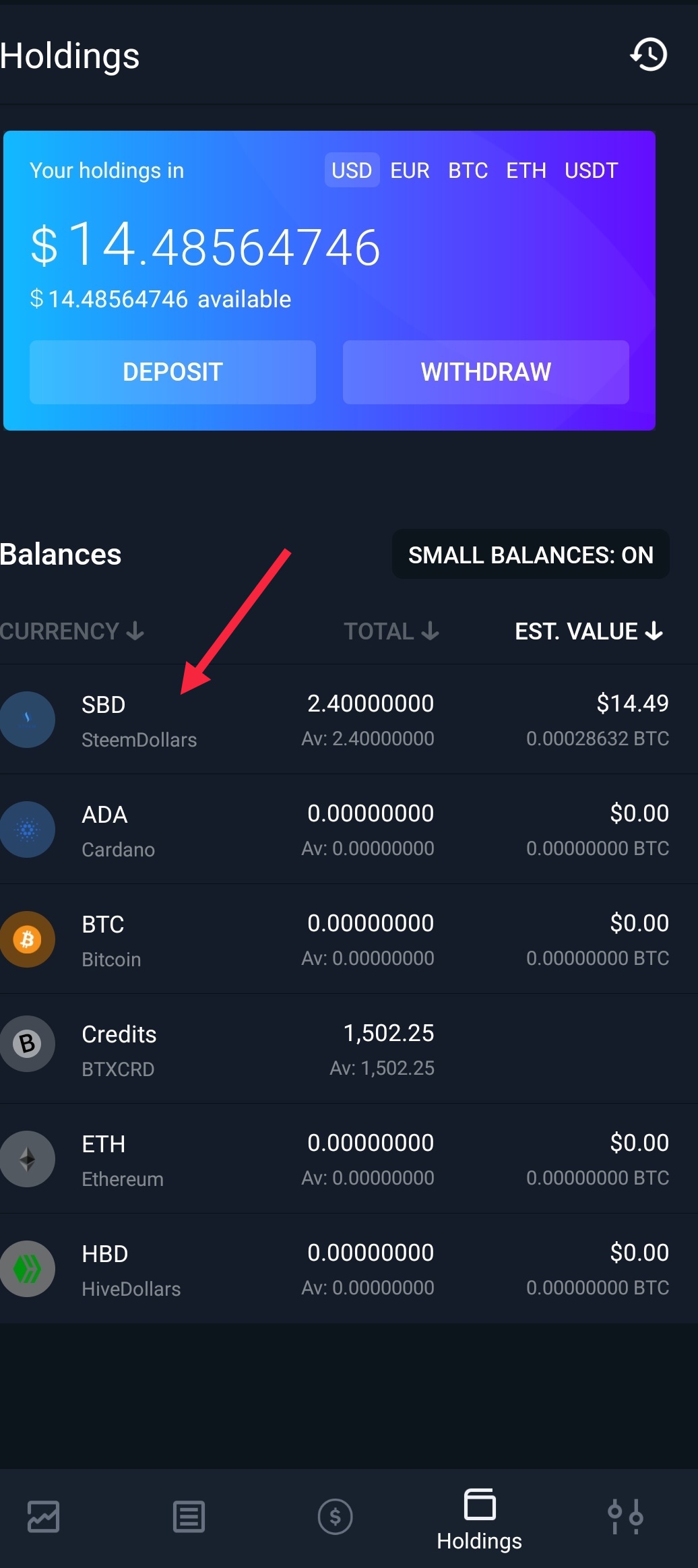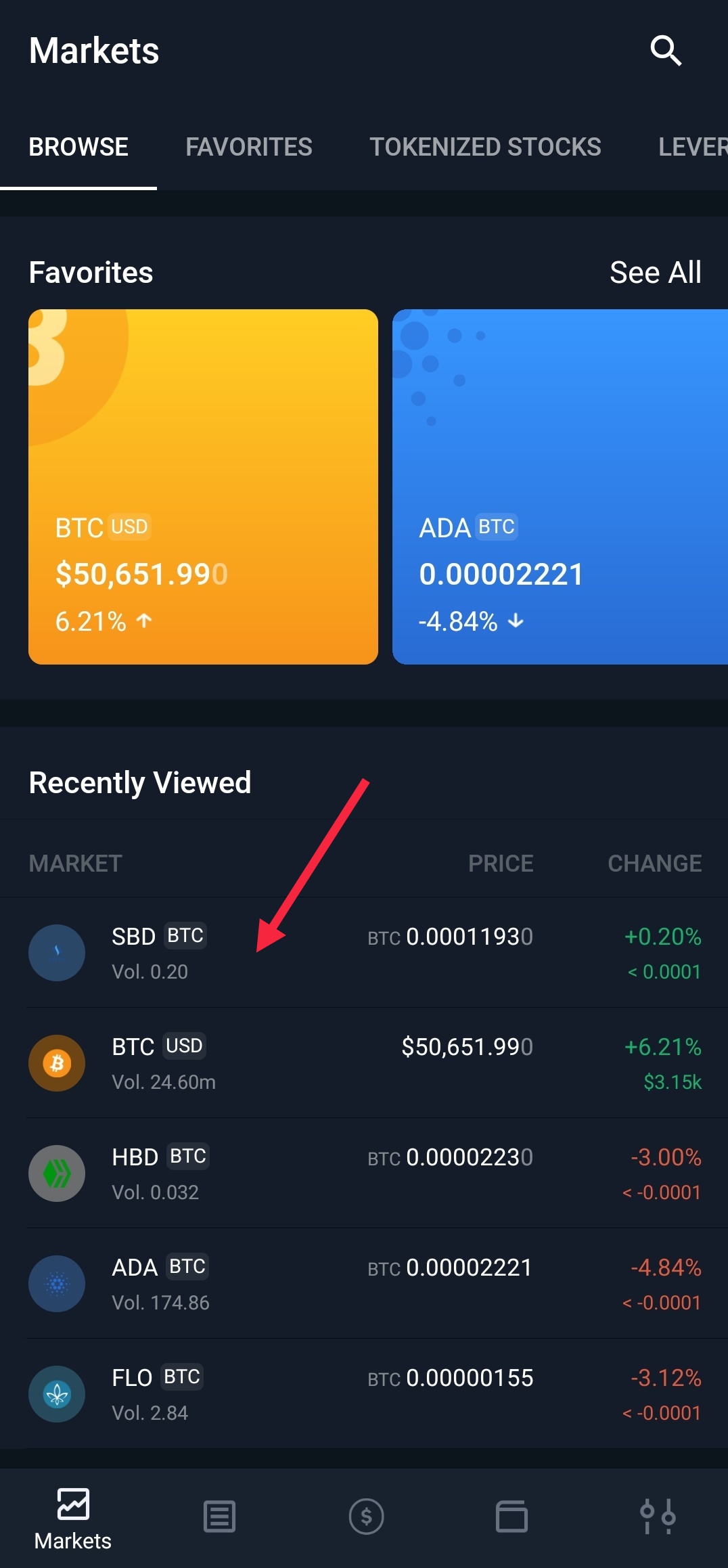 -- Search SBD from the list of other cryptocurrencies