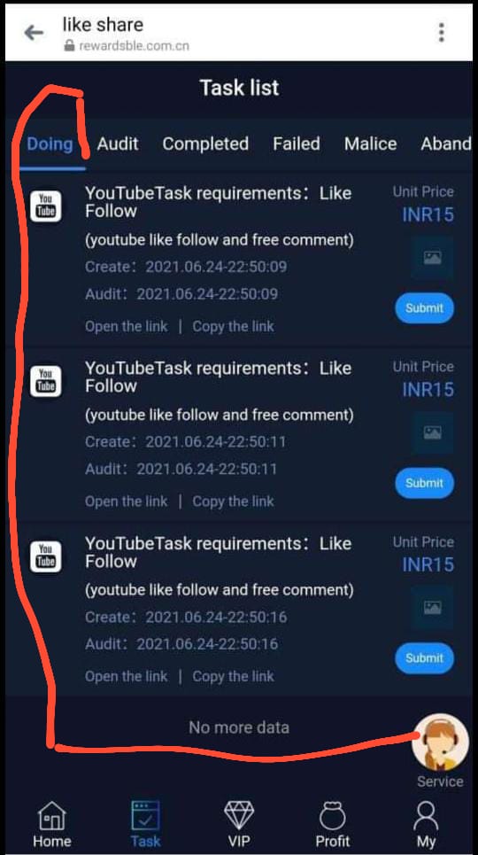 Teeno task hone ke baad Doing wala column khali ho jayega ab ye audit par chale jata hai jo company dekhegi ki apne task sahi se kiya hai ya nahi fir uske baad ye apko complete me dikega ki task complete ho chuka hai ab apka ₹15+₹15+₹15 = ₹45 apke website ke wallet me show hoga jise aap "MY" option me jakar dekh skte ho ,
