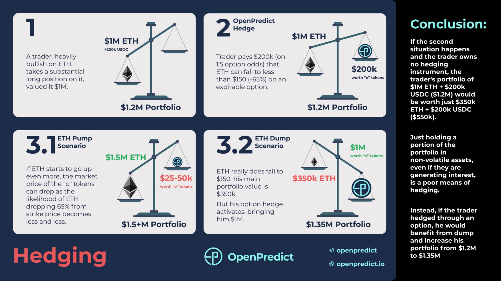 One of the core products of OpenPredict is options for hedging against asset price risk. This offers a powerful financial instrument to those concerned with short- or mid-term volatility in the assets they hold.