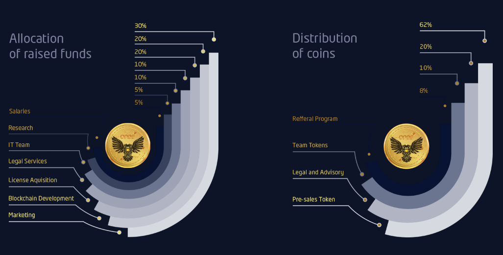 - Биржа. Децентрализованная платформа обмена ORBIS будет использоваться только для покупки и продажи Orbiscoins и обмена на все имеющиеся денежные валюты