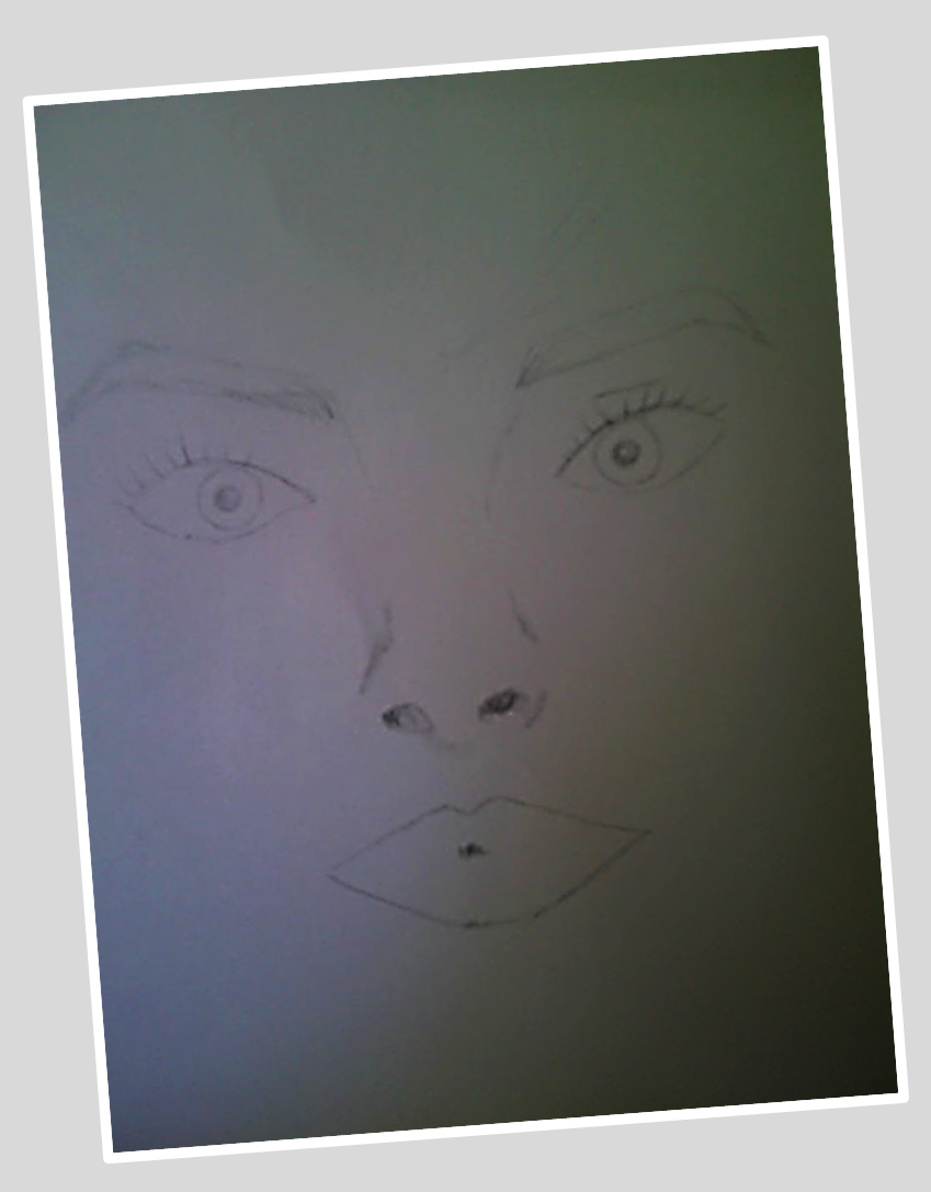 Tocó esperar en el lobby. Mientras, vi una hoja y dos creyones (Negro y Morado). No había borrador. No tengo un celular con buena cámara, pero aquí les comparto el resultado. Tenía mucho tiempo que no dibujaba rostros y mucho menos con creyón, pero la imagen era bastante bella y la espontaneidad del momento abrió paso a esta nueva serie que hoy comienza.
