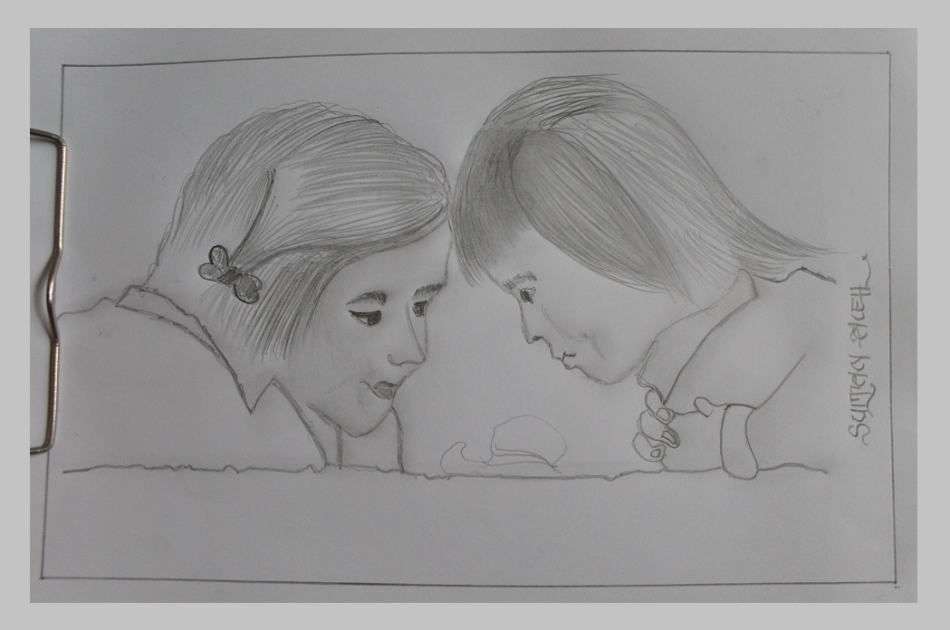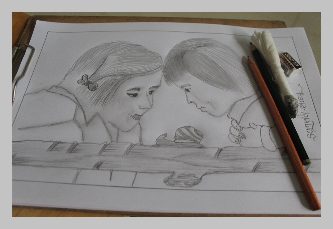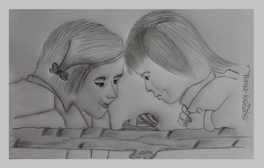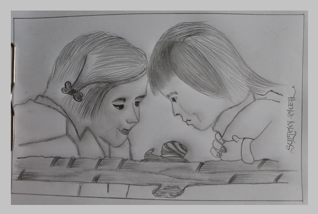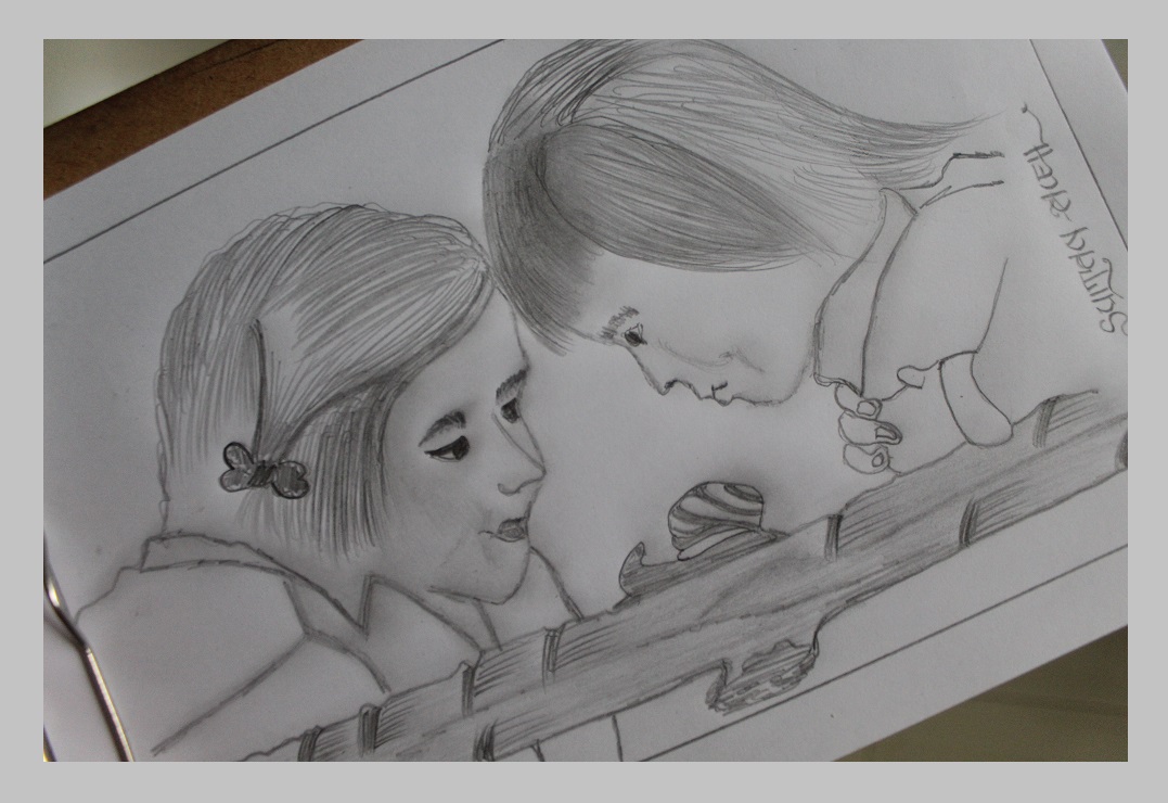Dua bocah i yerlihat sangat memperhatikan gerak siput