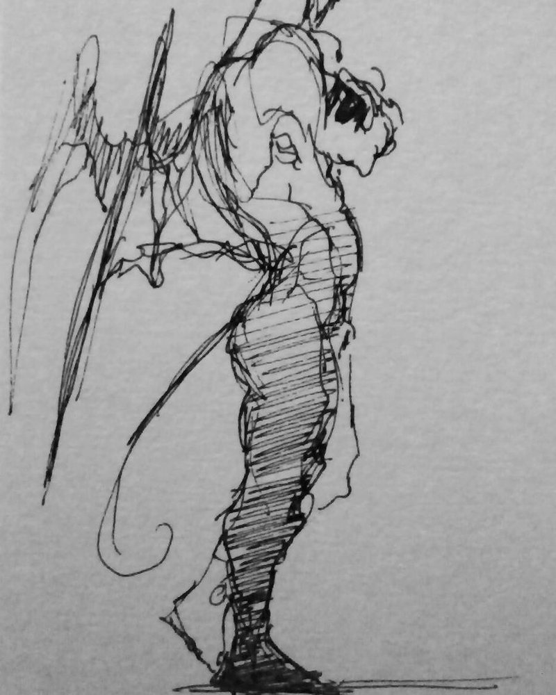 ((sometimes I like to draw creepy lil angel dudes, the kind you'd find at Broad and Snyder tryna sell you a cell phone and/or percocets. Or bones, idk. Depends on the day)