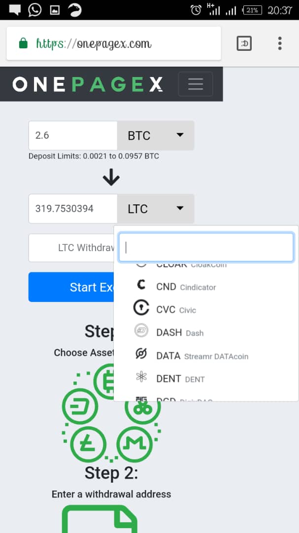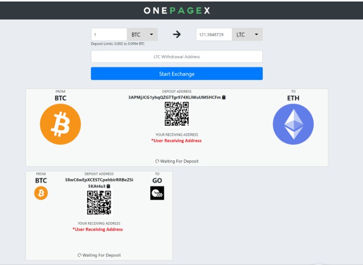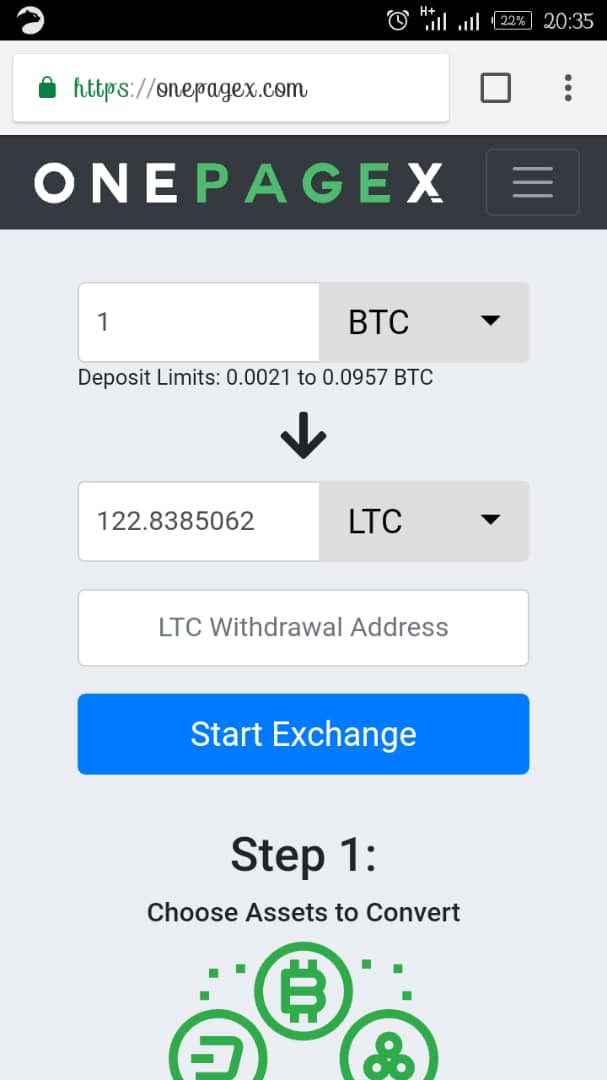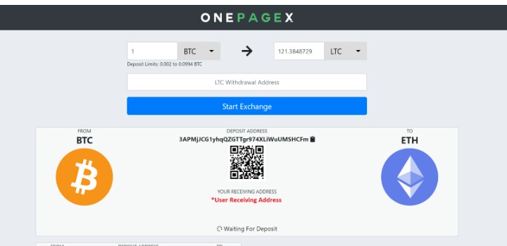 OnePageX so far can only convert from Bitcoin to other 139+ cryptocurrency, and its currently working on adding other cryptocurrencies to be converted from. And as the name says "OnePageX" you can do more than one transactions in same page, this will be explained more below during the "how to use" section of this writeup.