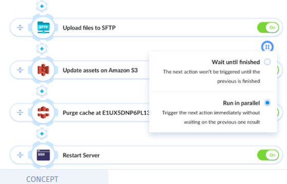embarked on a 3-layer parallel system. This enable pipelines to work simultaneously with their actions to achieve faster results. Let's say, running 2 pipelines at once requires 2 compute units, also running multiple actions at once within 2 pipeline requires 4 compute units. At the same vein running 2 actions within 2 pipelines with 2 tasks require 8 compute units. With Buddy's parallel system you are sure of achieving your core business values at a faster rate.