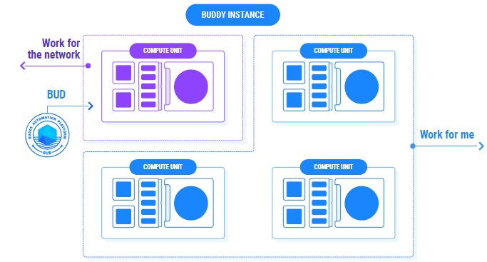 The idea behind shared automation grid is to deposit intensive automation tasks, run by users into networks of Buddy instances. This is achieved by the use of compute units which is a small element that can be used as nodes of shared automation grid in exchange of Bud tokens. These units are 2vCpus, 2gb of ram and 4gb of SDD storage.