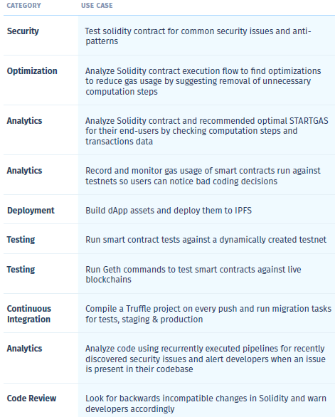 Buddy DevOps marketplace allows users to plug in their own actions either free of charge or at a purchase. Researches have shown that smart contract like entherum are prone to theft and insecurity due to its vulnerabilities. Automation test makes it easier to enter any dApp development as well as increase the security level of smart contracts