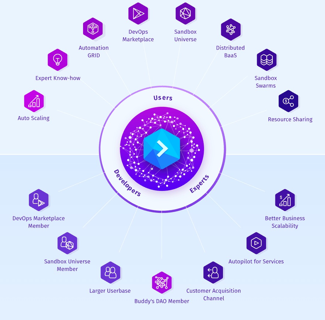 Buddy is a decentralized development automation platform built on blockchain technology which streamlines application development under an auto control and enables applications to be built on blockchain, thereby creating a decentralized DevOps marketplace and automation grid.