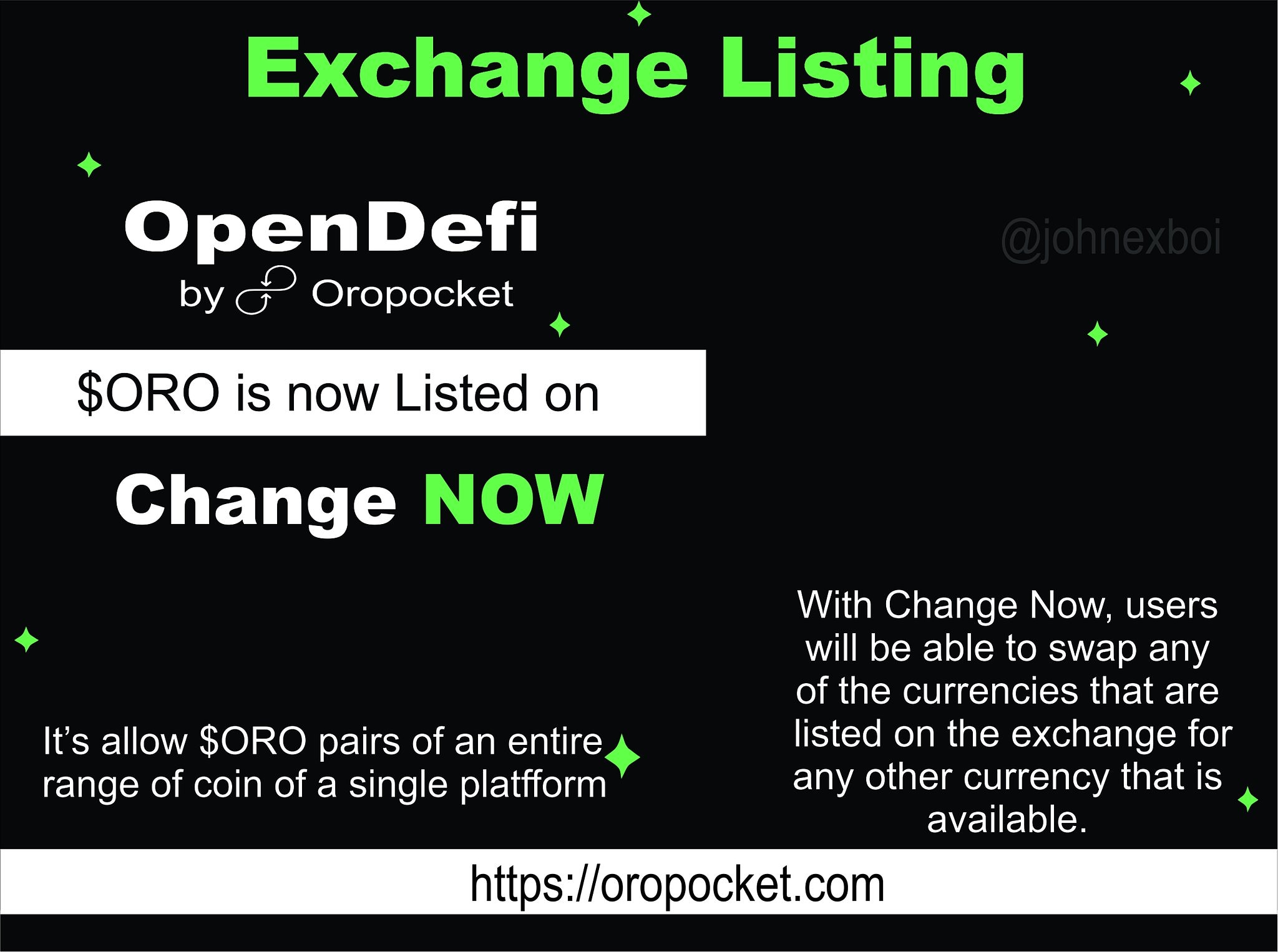 ⚡Am happy to announce that $ORO is now listed on @ChangeNOW in which users will able to swap any of the currencies that are listed on the exchange for any other currency that is available 🔥