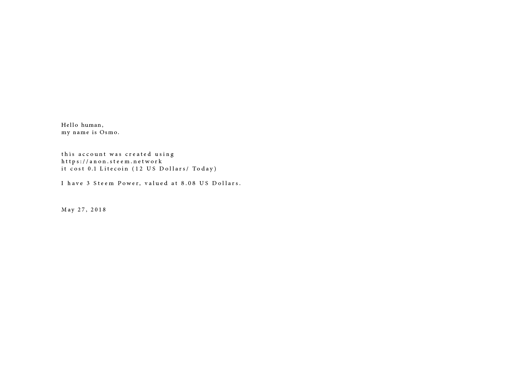 ✅ @osmo, I gave you an upvote on your first post! Please give me a follow and I will give you a follow in return!
