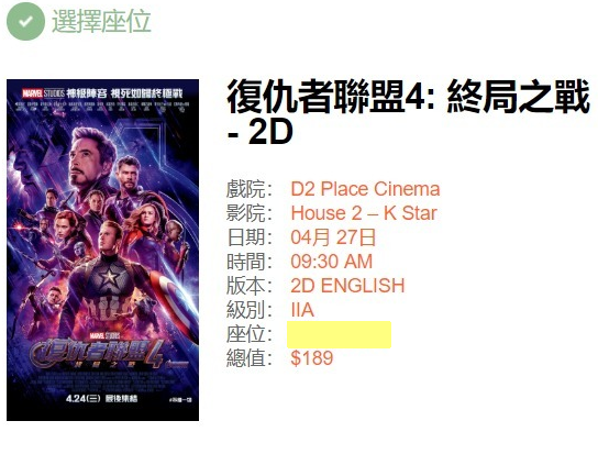 而家睇套戲,正價閒閒地都要過百蚊,但早場都仲係4、50,可以慳到近半嘅睇戲錢。就好似全城都爭崩頭嘅《復仇者聯盟4》2D版咁,好多戲院早場都要收百一至百二,簡直係㩒住搶!不過我就搵到荔枝角D2 Place嘅CGV Cinema,竟然$55有交易,加埋網上手續費$8,3張飛都只係需要$189,就算早啲起身都抵啦。
